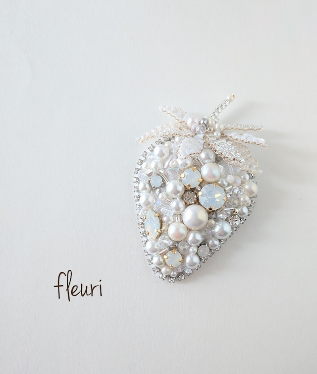 シルバー色のいちごのブローチです。 葉っぱは立体的にビーズを編み込みました。 ブローチ金具1つ ⚠️ブローチのみ 使用材料 ★ガラスビーズ ★miyukiビーズ ★tohoビーズ ★シルキーパール ★スワロフスキーストーン ★ 16kgpダイヤレーン ★ デリカビーズ ★スワロフスキーパール ★ たて7センチ 横約4センチ 個体差あります。 ★ブローチは回転式の日本製 裏側のフェイクレザーのお色はお任せください ビジューの爪にお洋服が引っ掛からないようにご注意下さい。 金具やビーズは時間の経過とともに酸化して色褪せが生じる場合がありますのでご了承下さい。 お使いになられた後、柔らかい布で優しく拭き、空気に触れないように収納して頂けると長持ちします。 ビーズ刺繍は、大変難しく歪みなどが ございますので、ご了承ください。 ビーズは一粒一粒手作業でフェルトに 縫いつけています。 ハンドメイド作品ですので、ひとつひとつ個体差が出てきてしまいます。 それも、ハンドメイド作品、世界でひとつのアクセサリーと思って頂けますと幸いです。 送料にお箱代も入っております。
