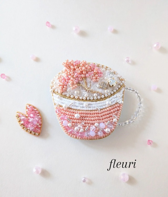 春風漂うさくらラテ&さくらの花びら ブローチ
