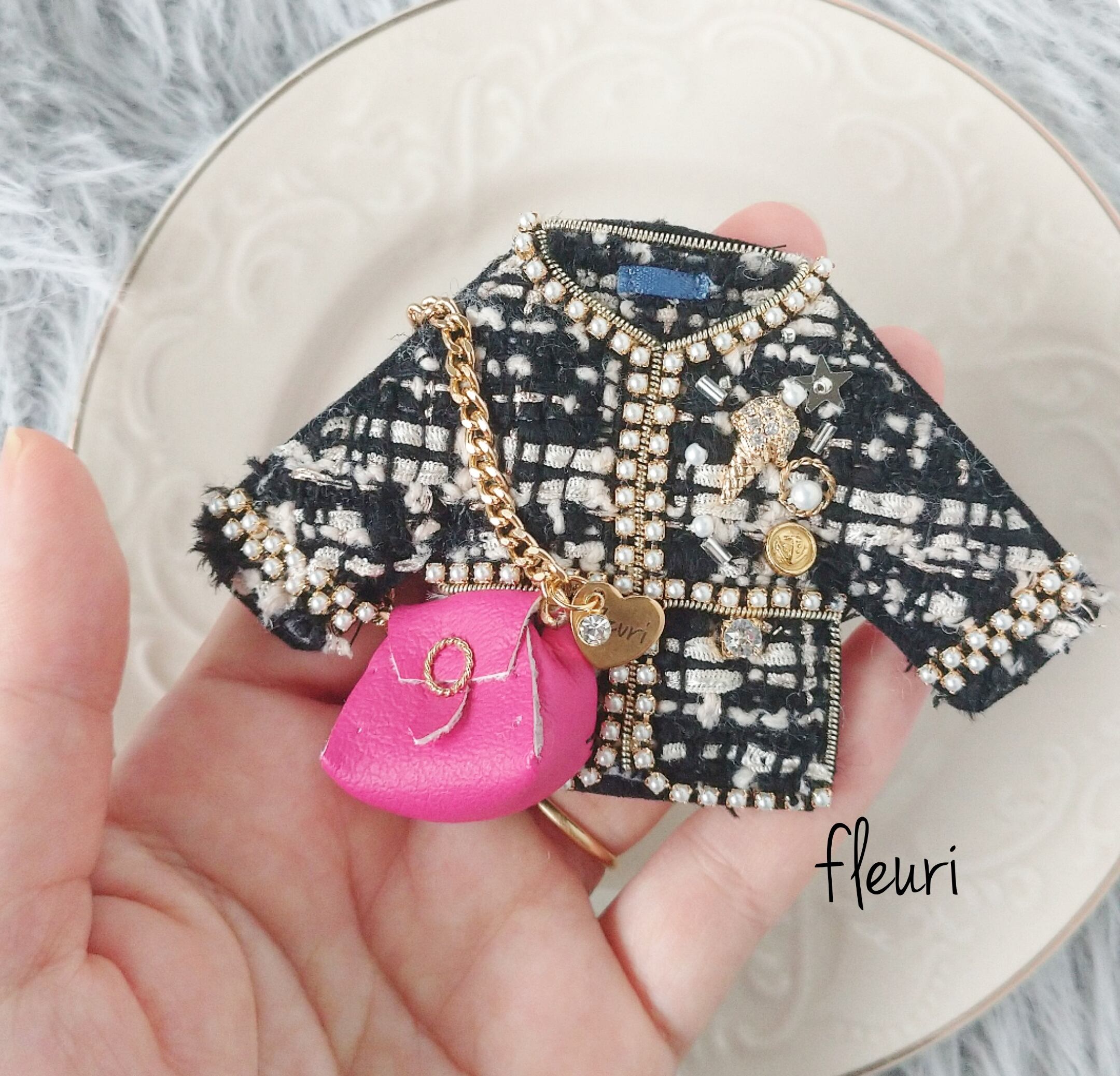ブラックツイードジャケットのブローチ