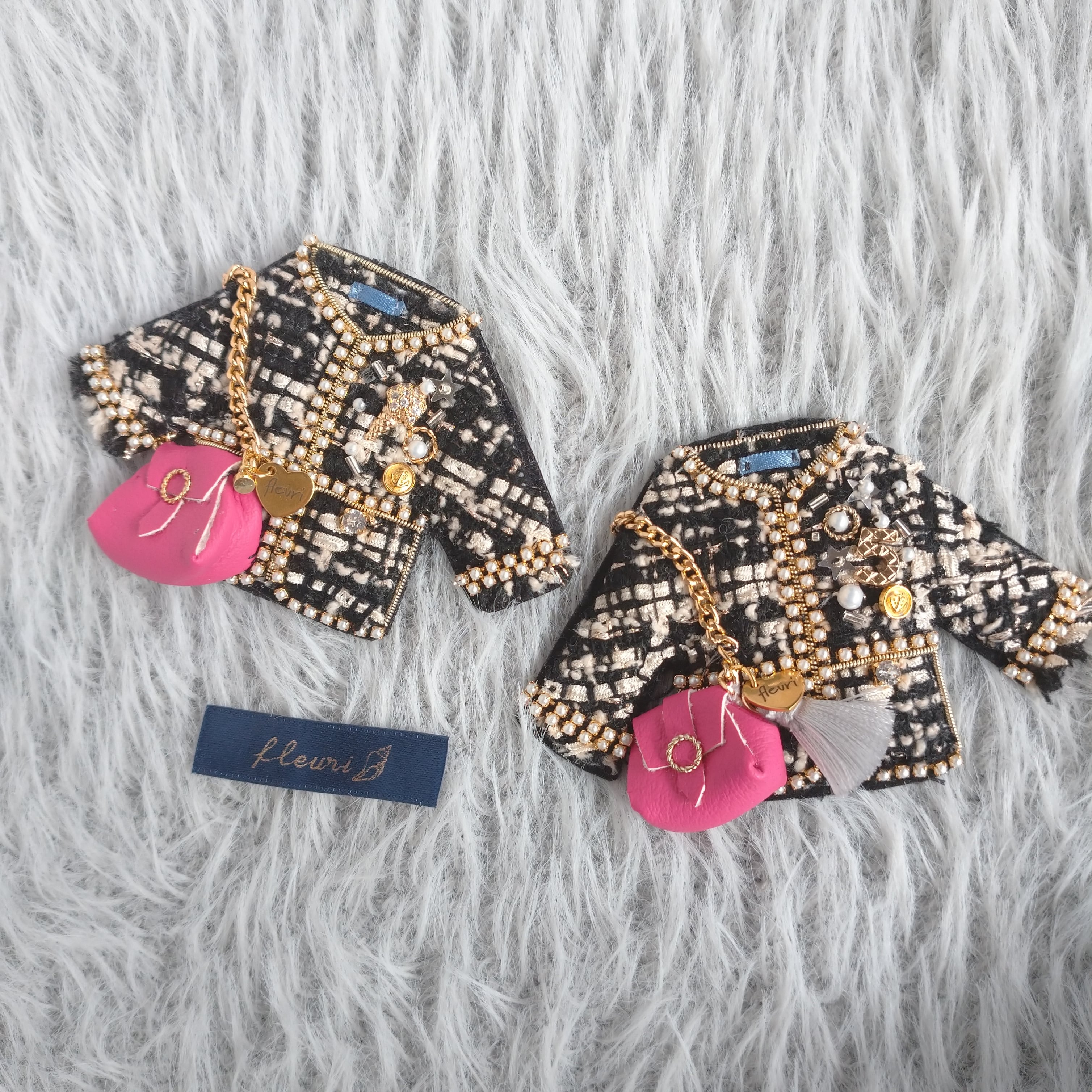 お洋服に付いたブローチも、洋服タグも、乙女心をくすぐる一品です。