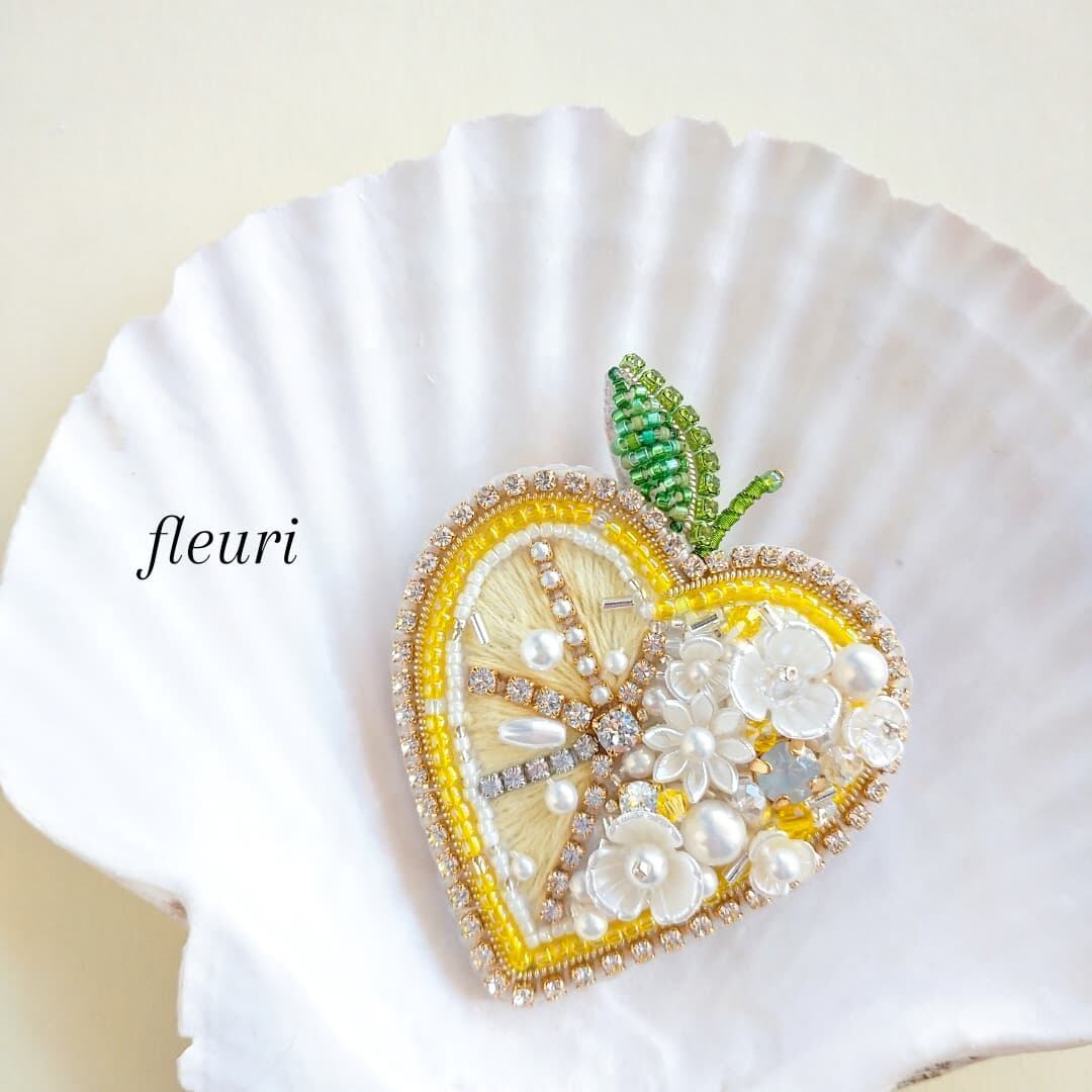 レモンのハート切りのブローチです。