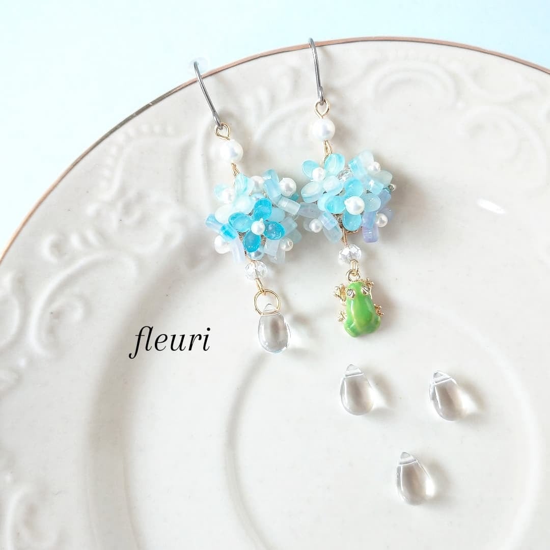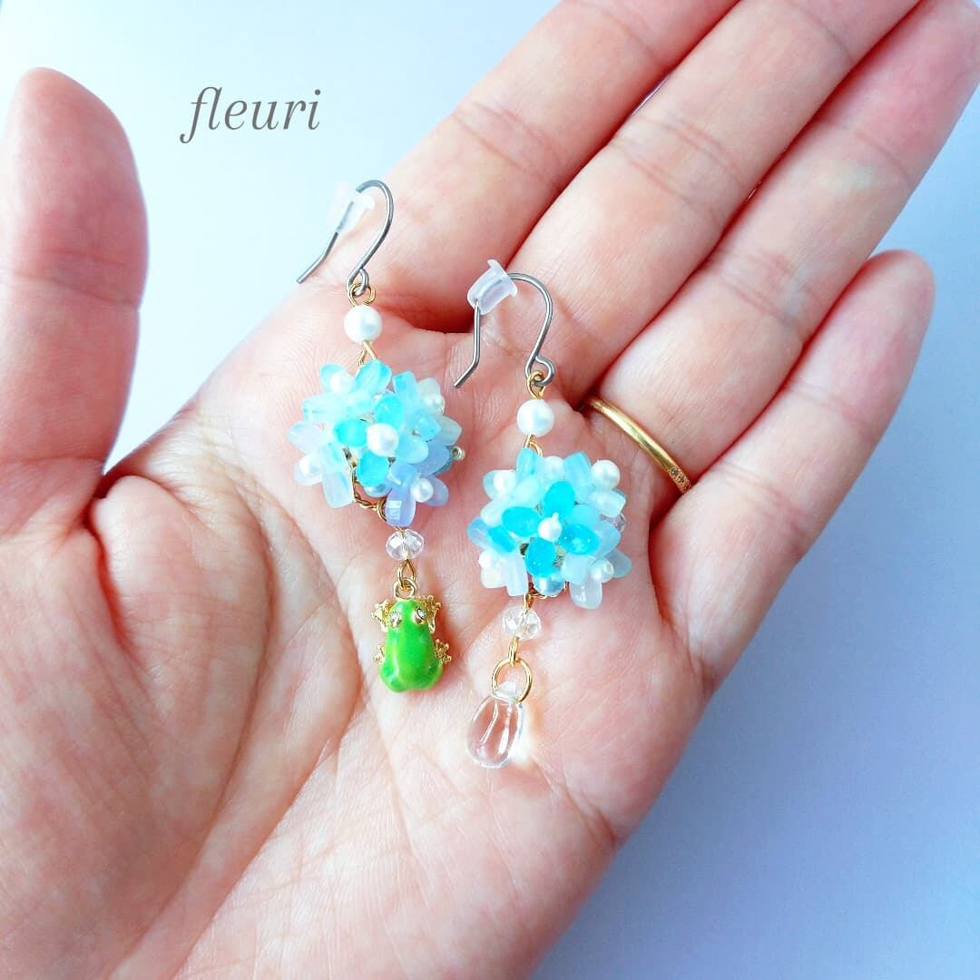 アジサイのパーツは一つ一つテグスで編みつけています。