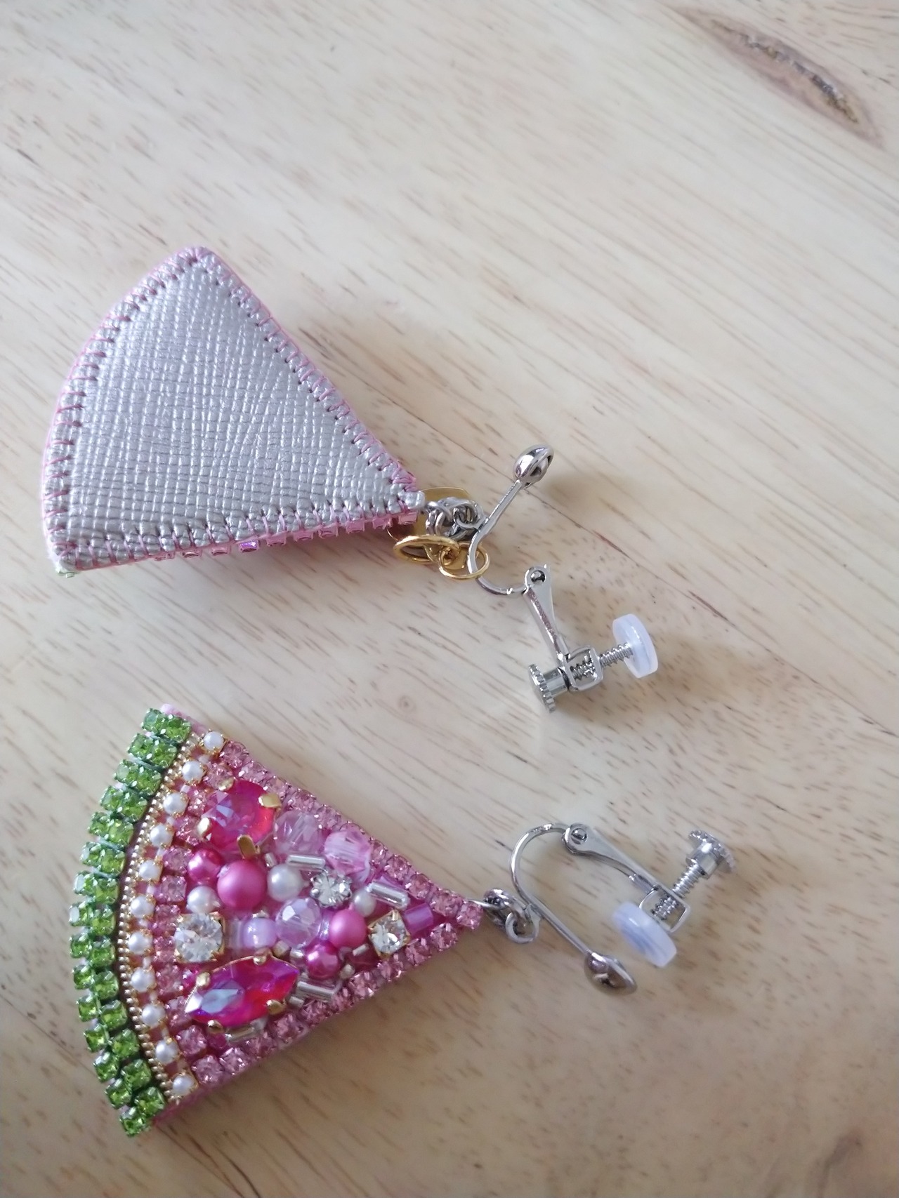 ネジバネ式のイヤリングで、耳が痛くなりづらいシリコンカバーつきです。