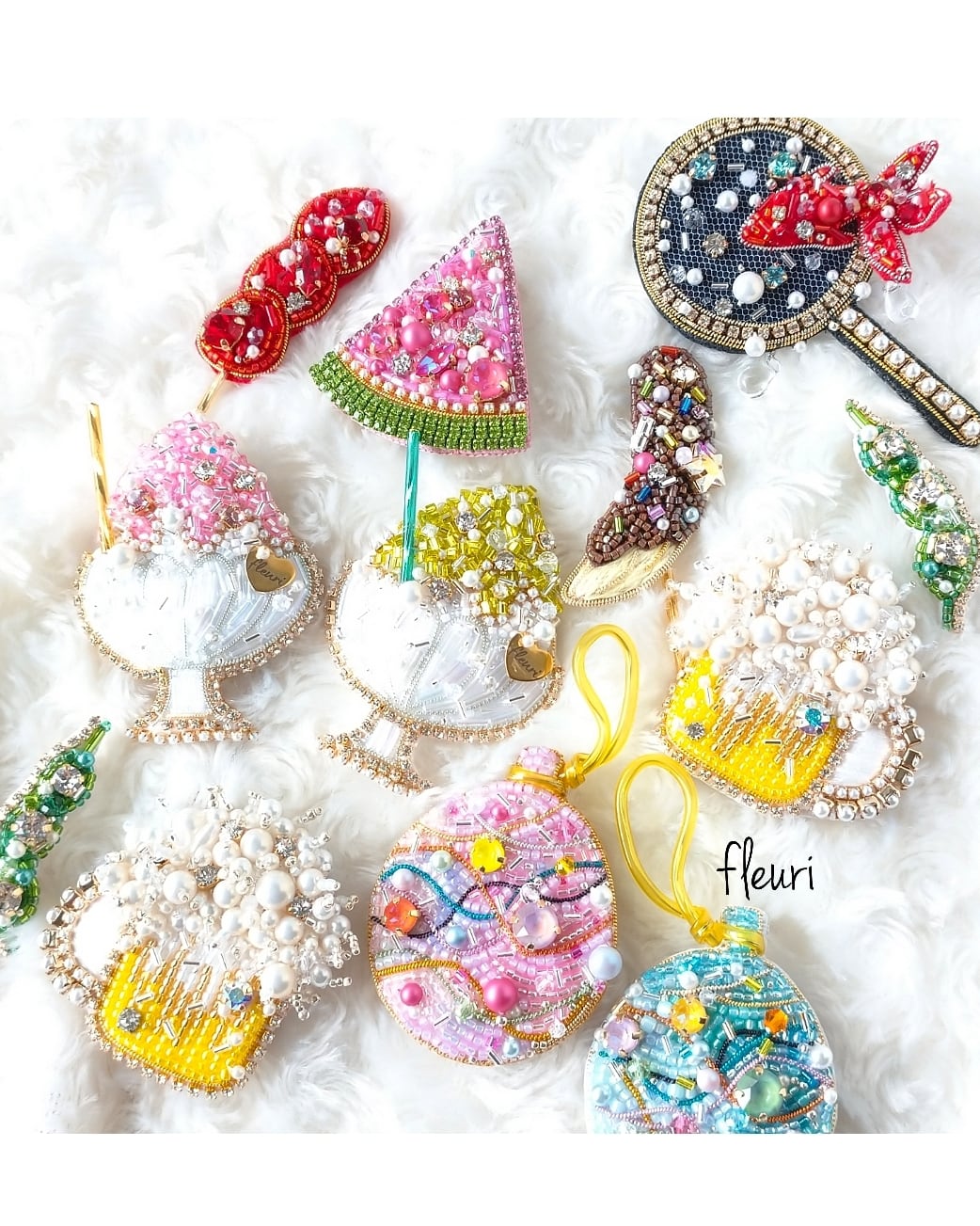 ビーズ刺繍は大変難しく歪みなどがございますので、ご了承ください。