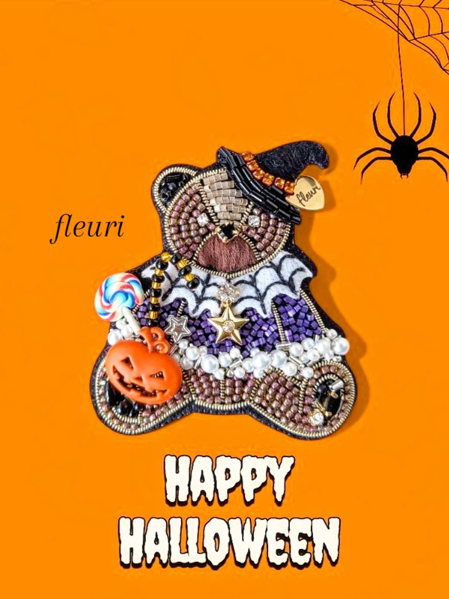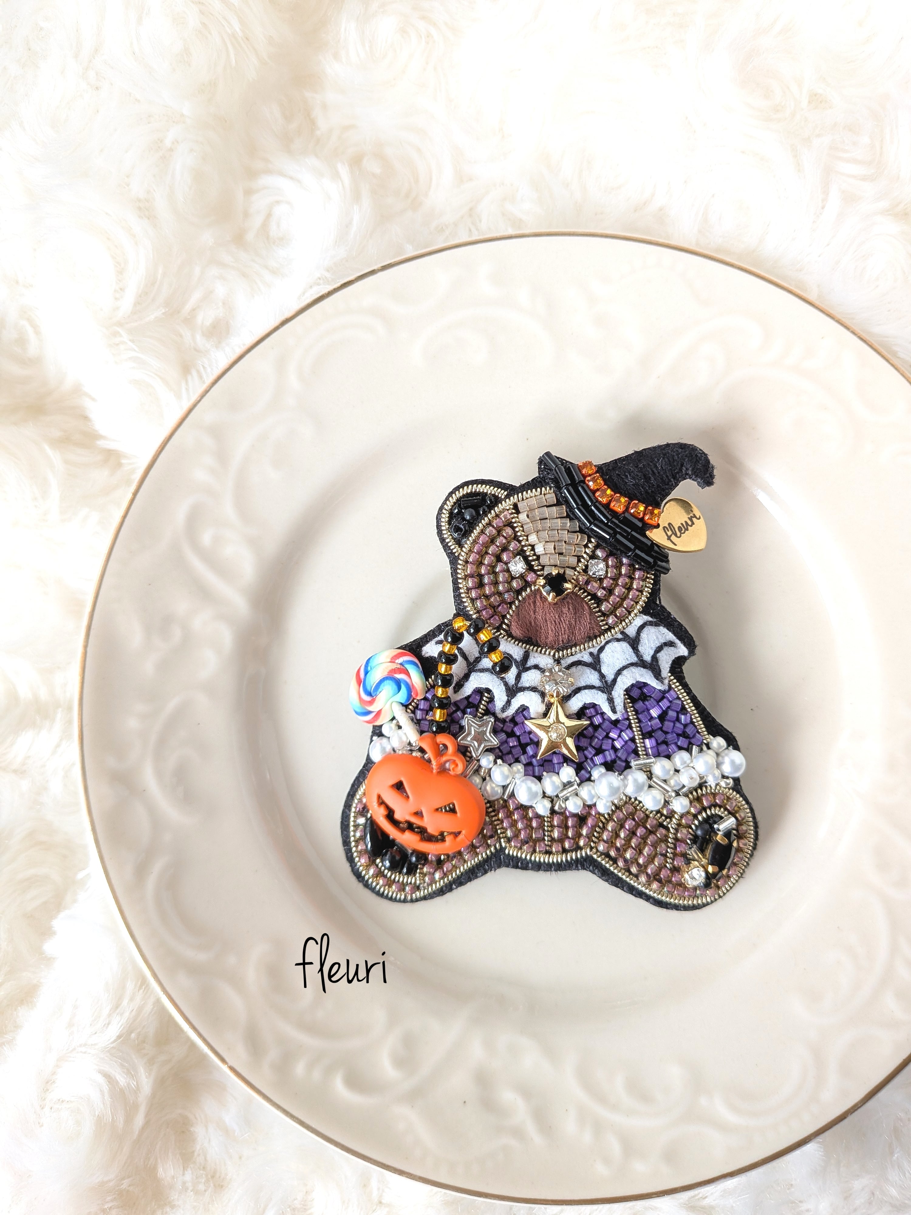 ハロウィンの魔法使いのくまのブローチです。