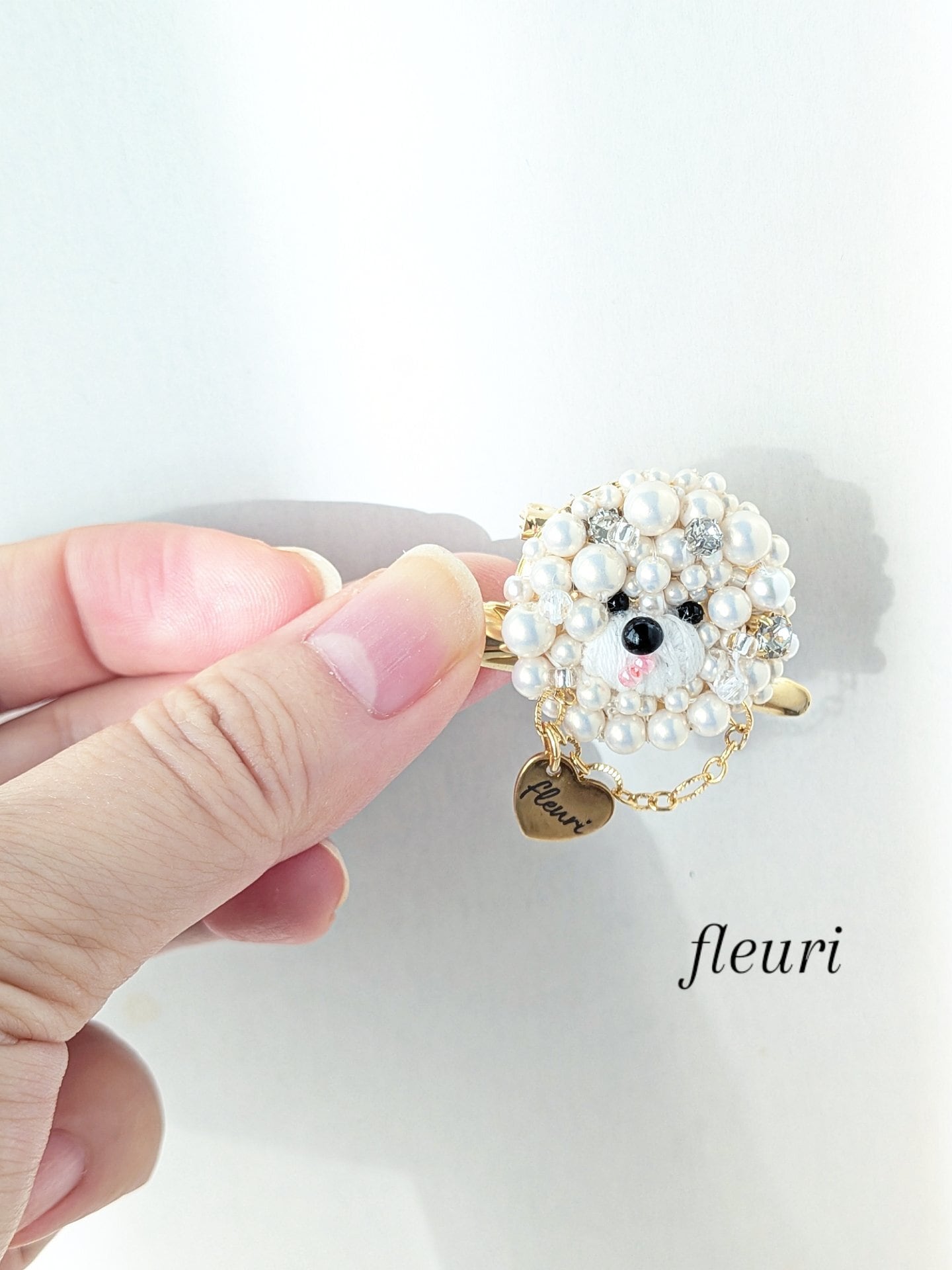 第2段 ビションフリーゼのブローチ兼ヘアクリップ