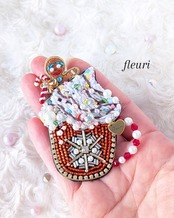 ホットドリンクををイメージしたクリスマスのブローチです。