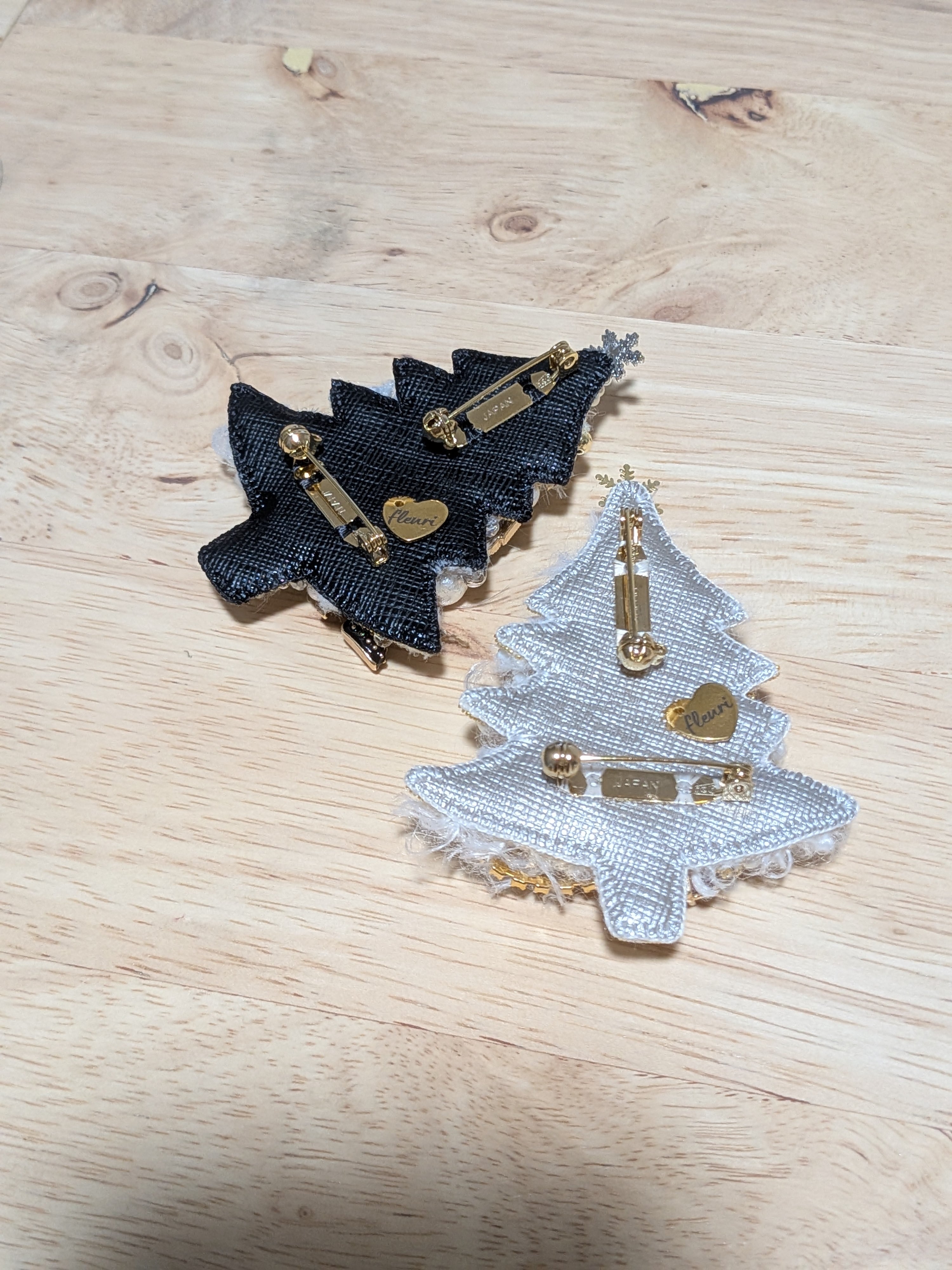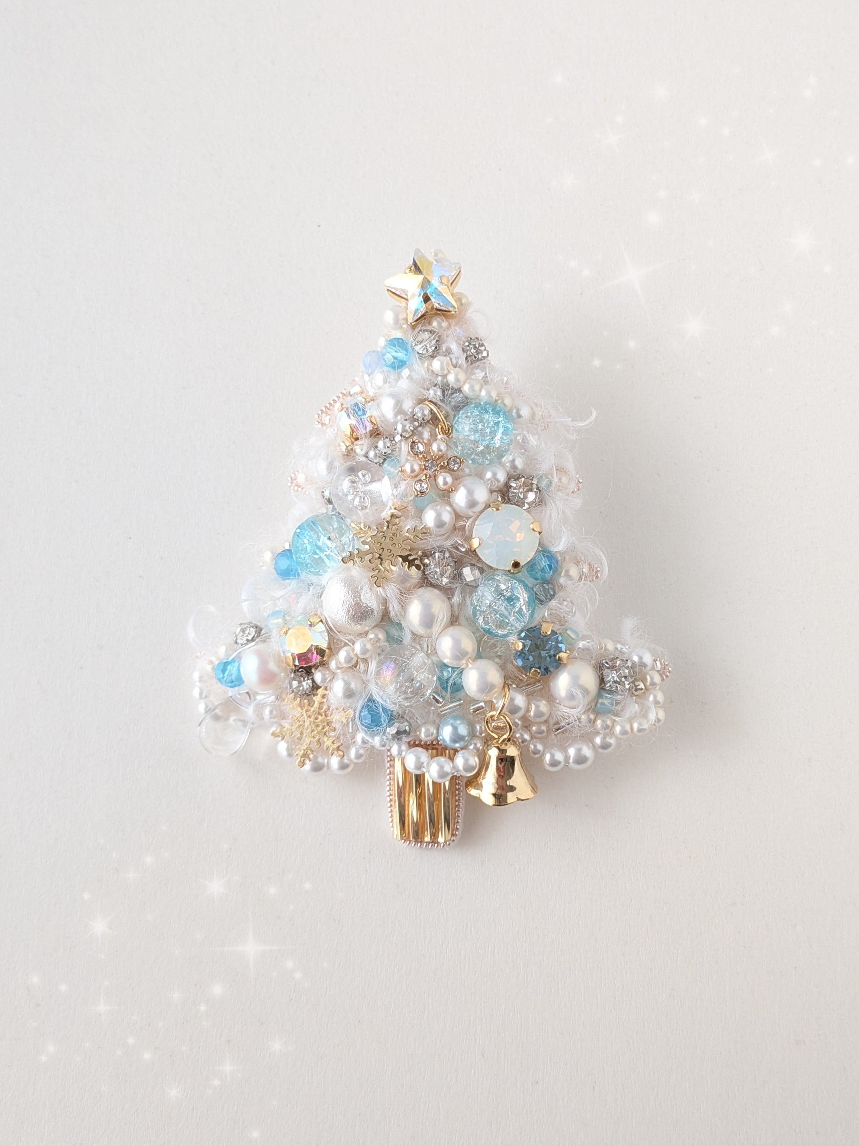 2025 ホワイトとブルーのクリスマスツリーブローチ