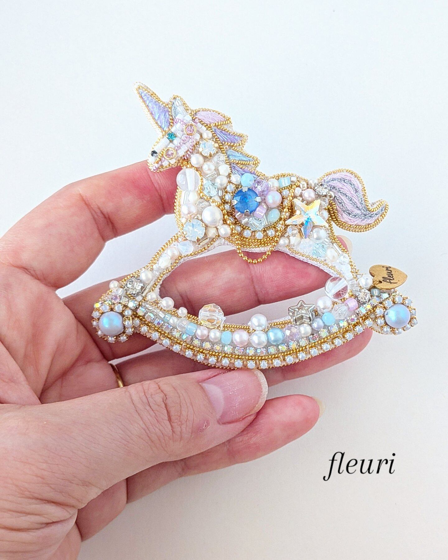 ユニコーンの木馬をイメージしたクリスマスのブローチです。