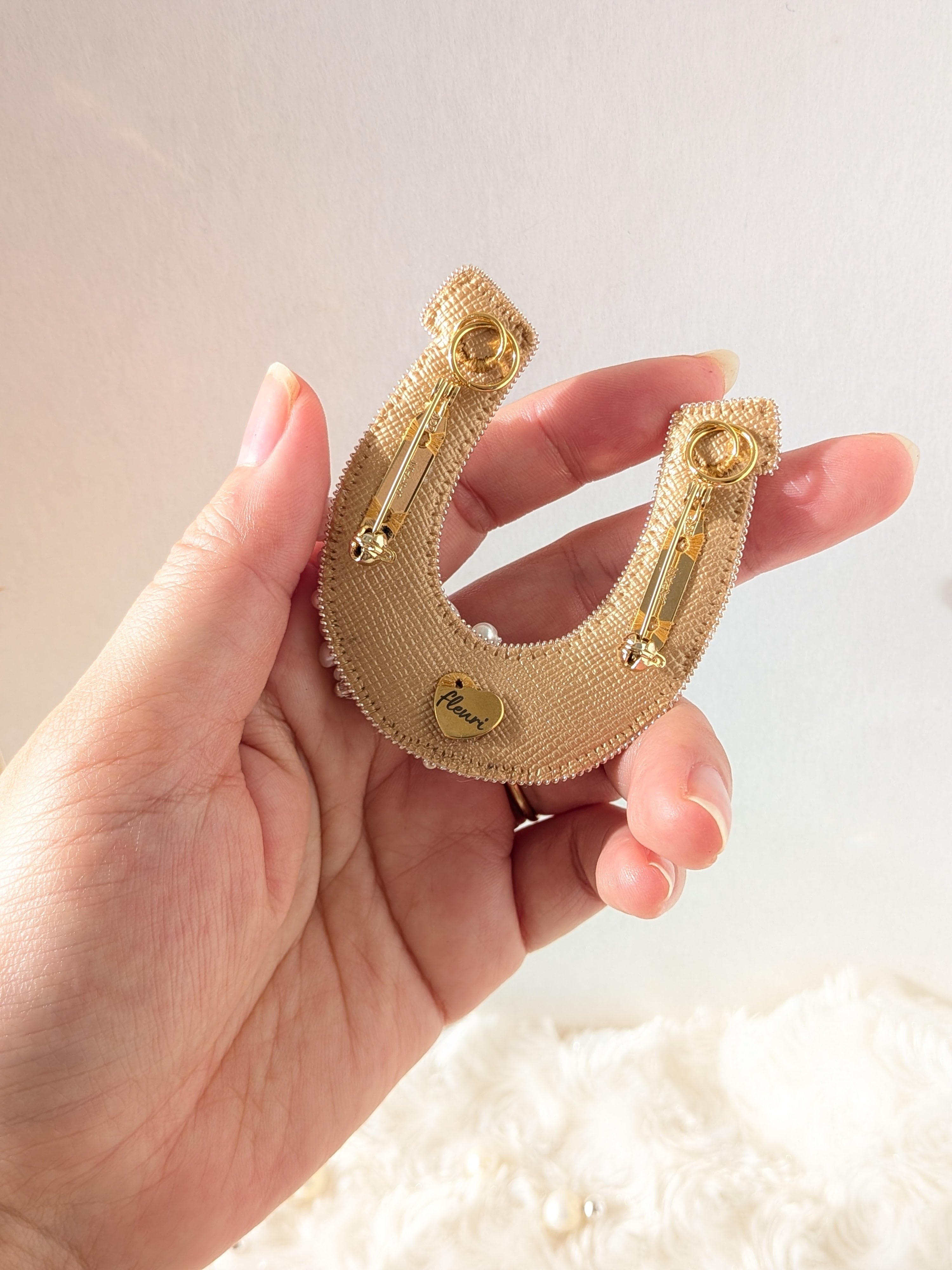馬蹄のブローチです。バッグチャームにもなる金具がついています。