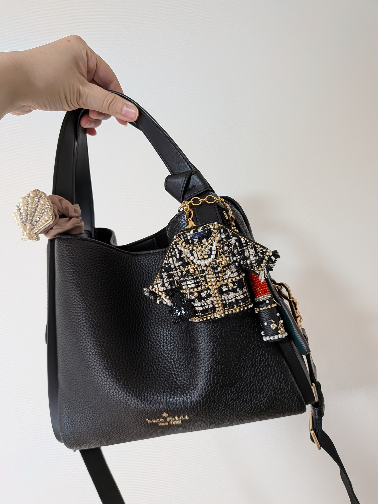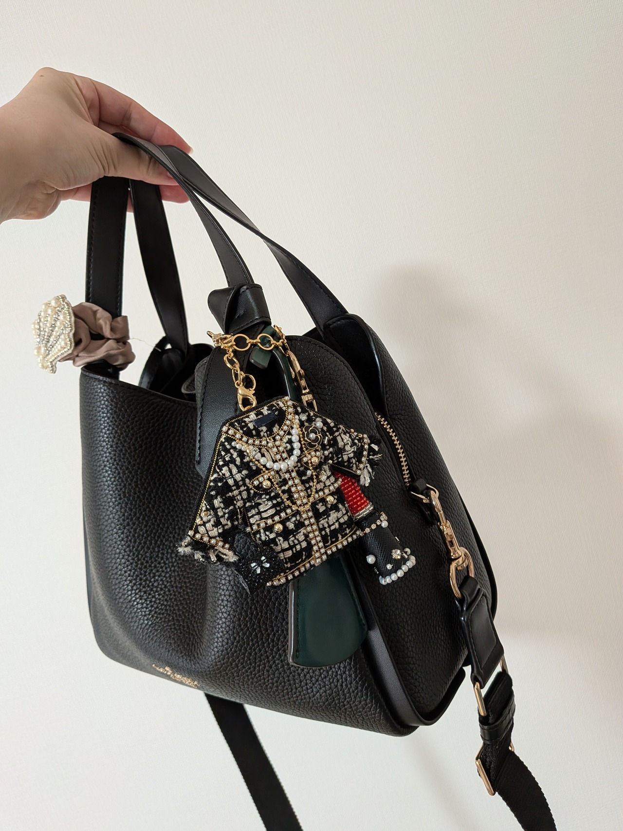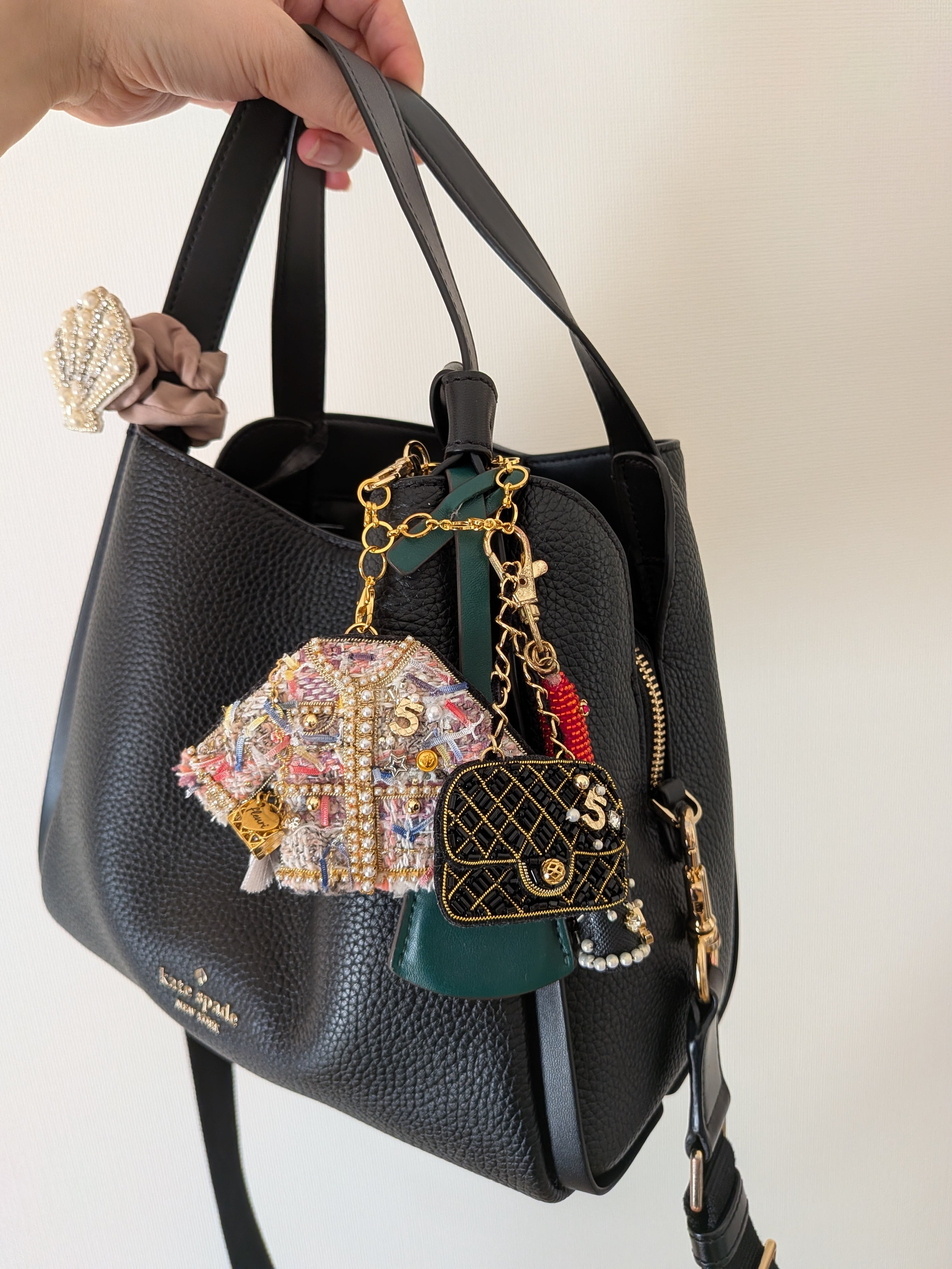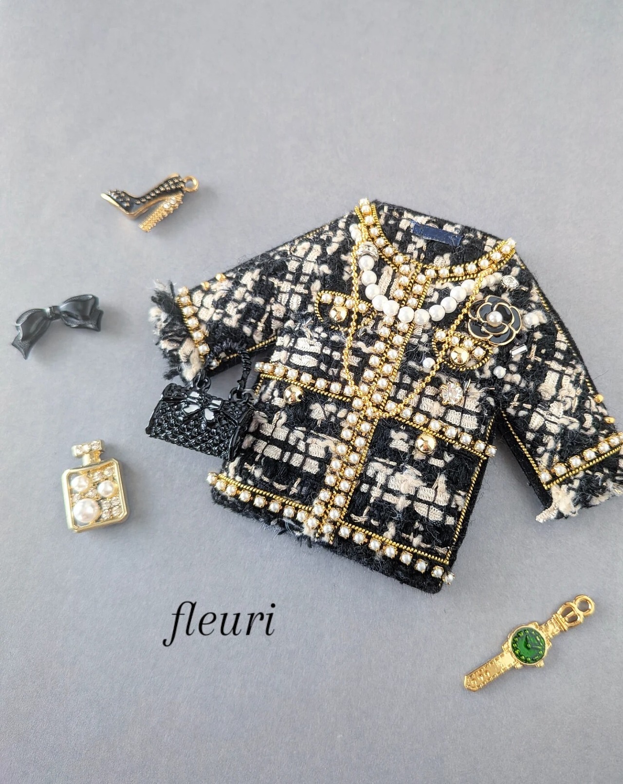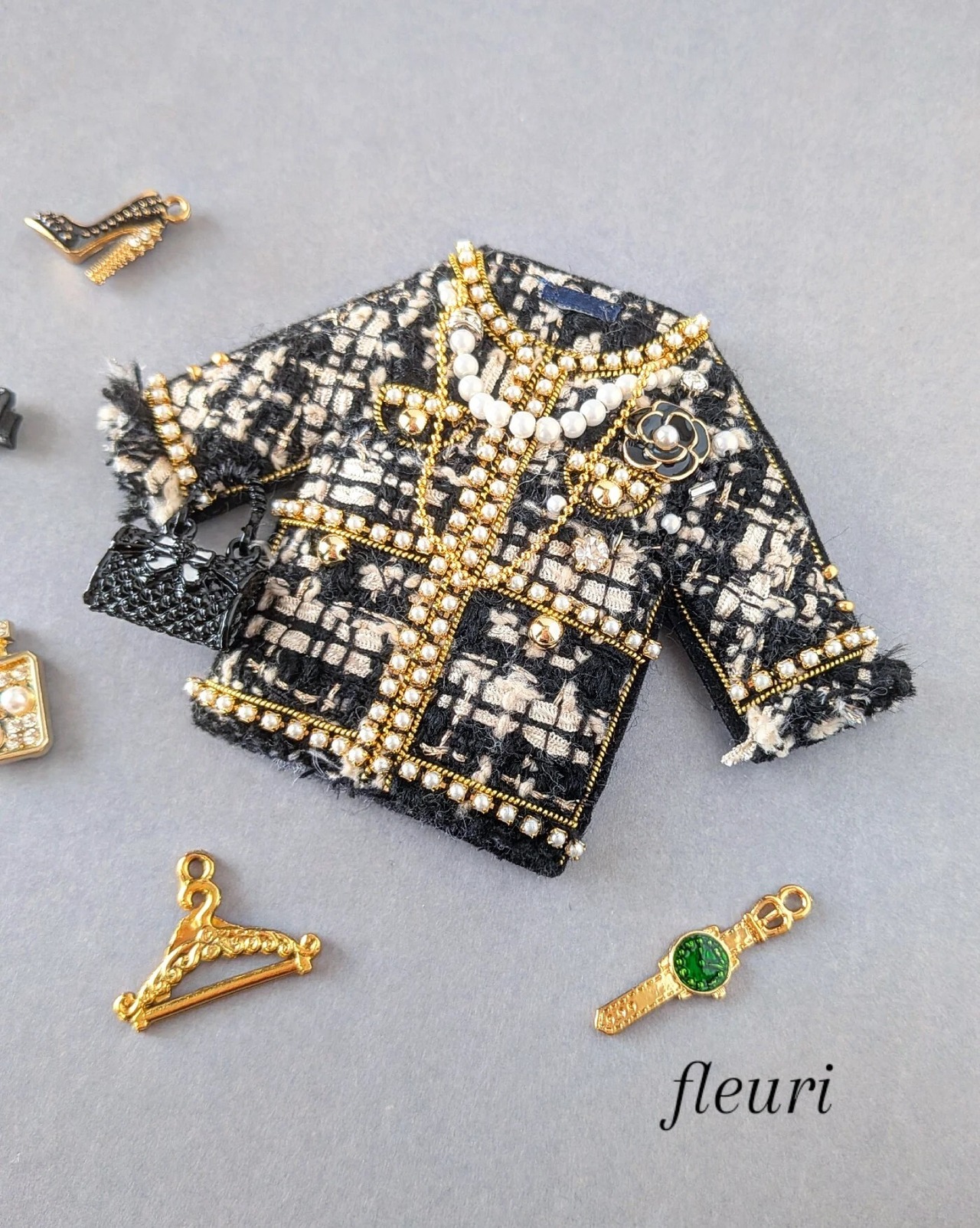 ブラックツイードジャケット ブローチ兼バッグチャーム