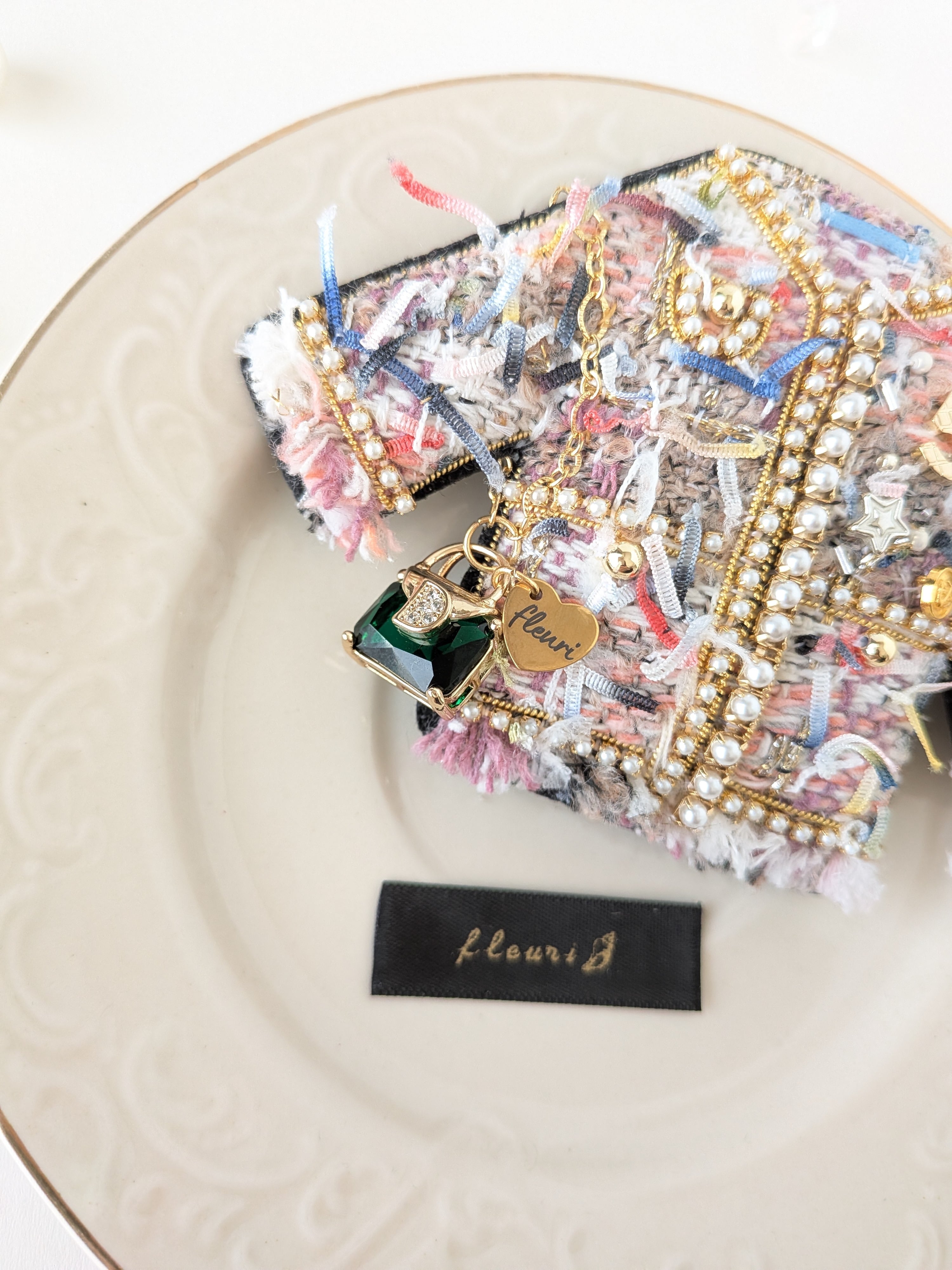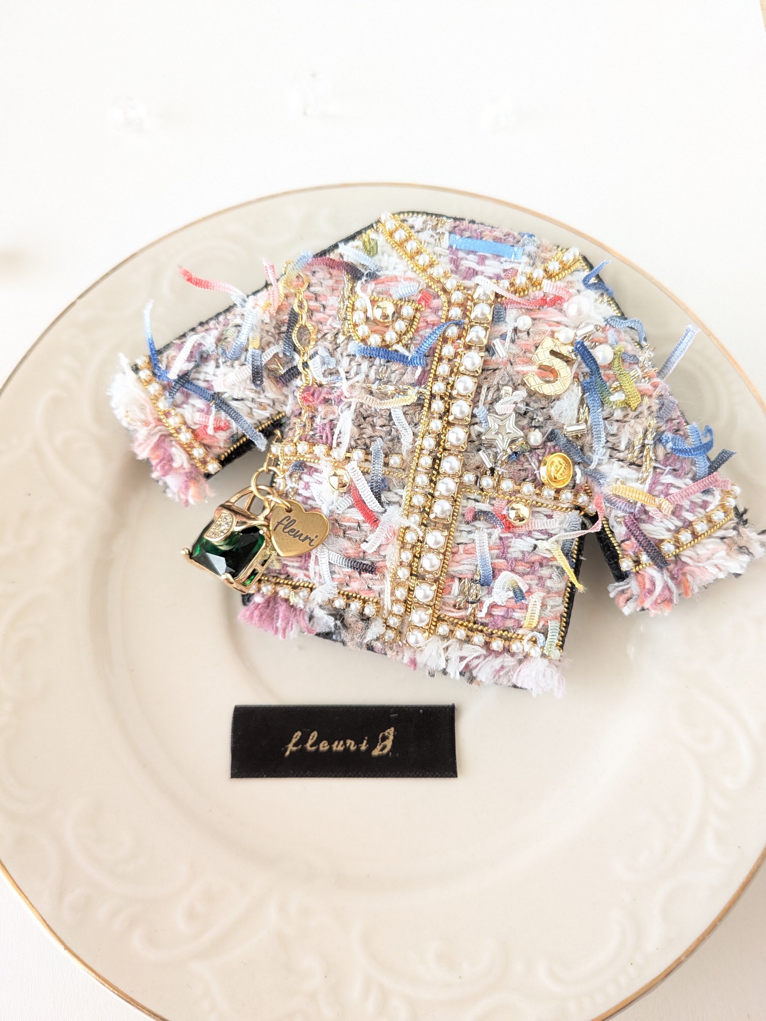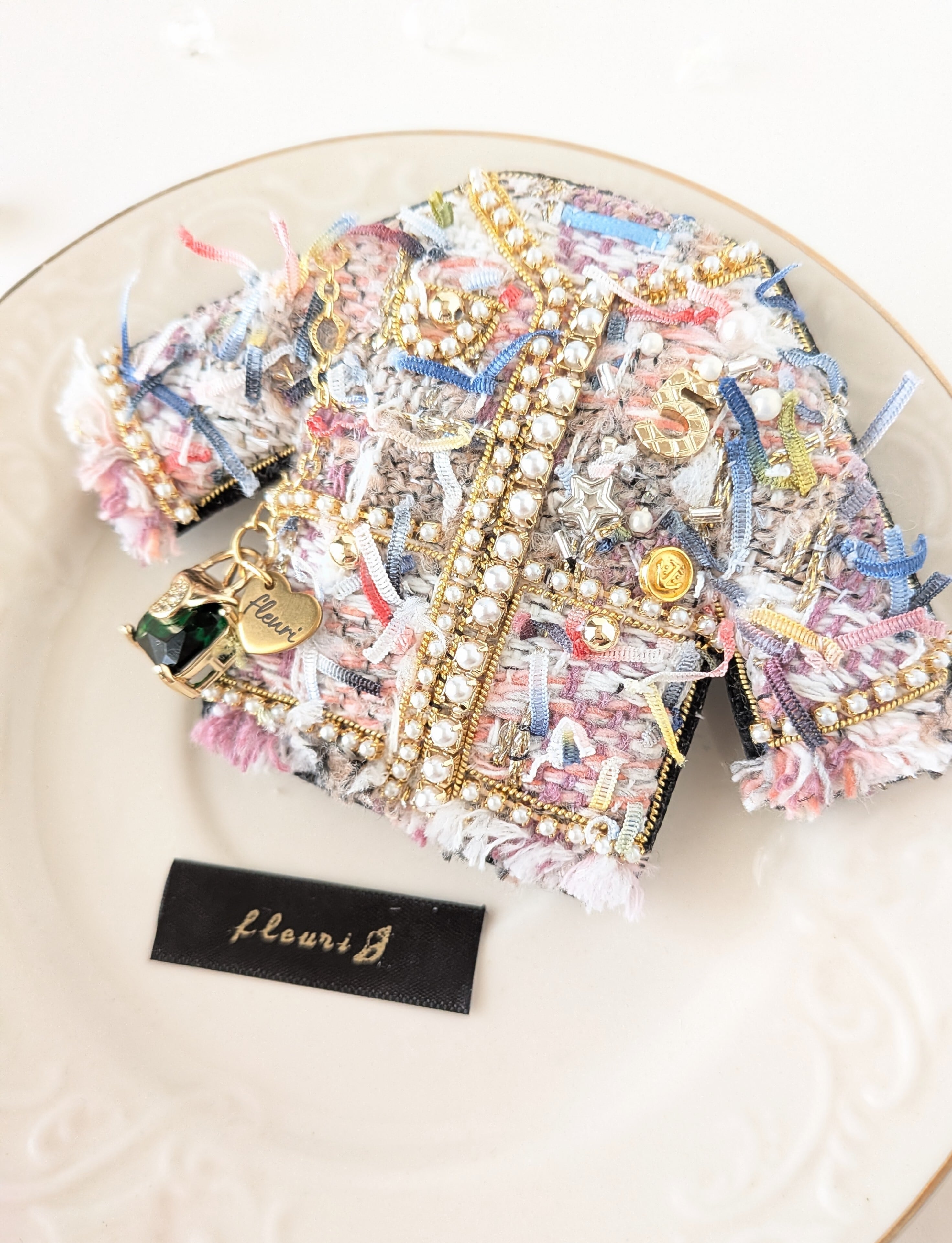 グリーンショルダーオシャレツイードジャケット ブローチ兼バッグチャーム