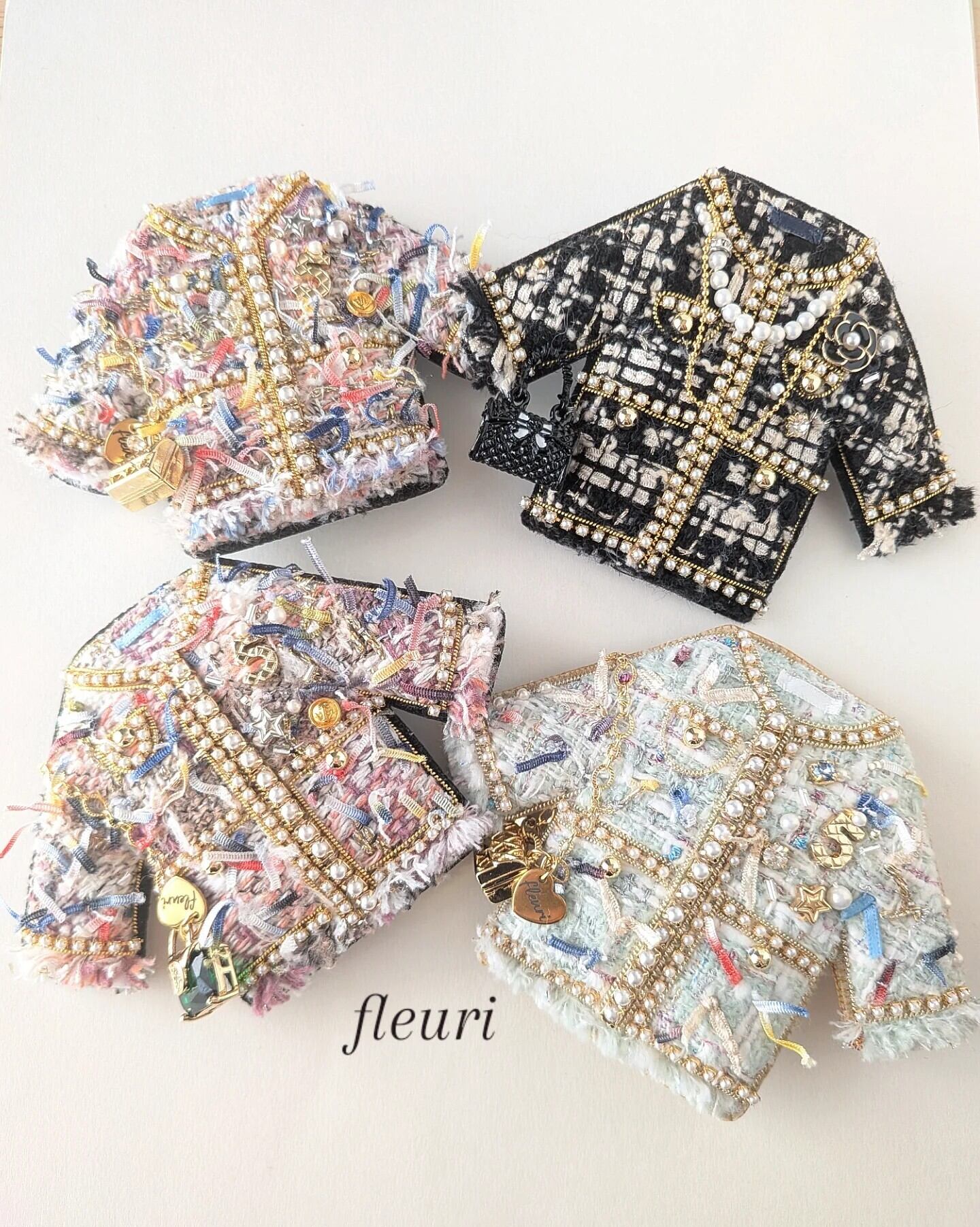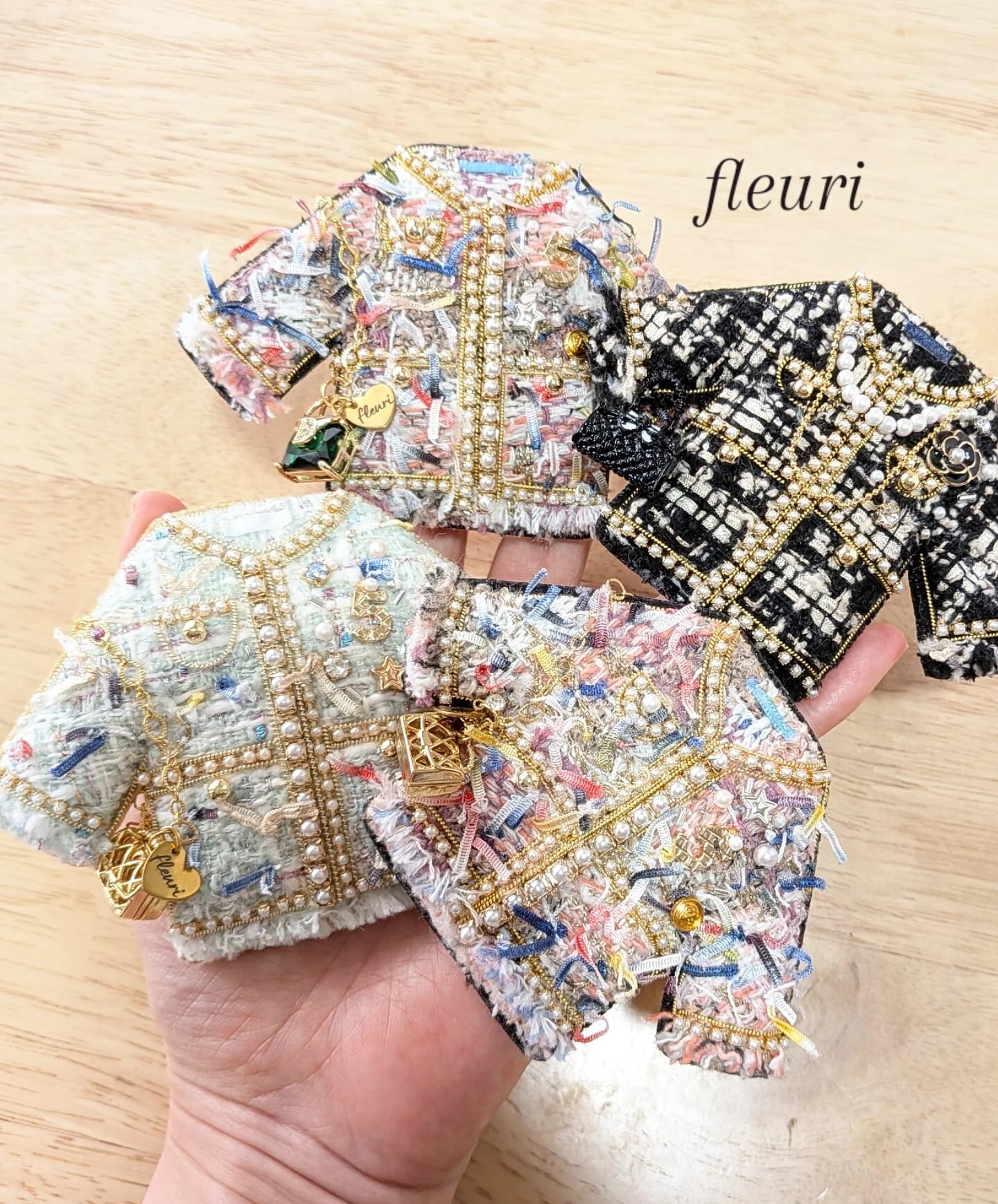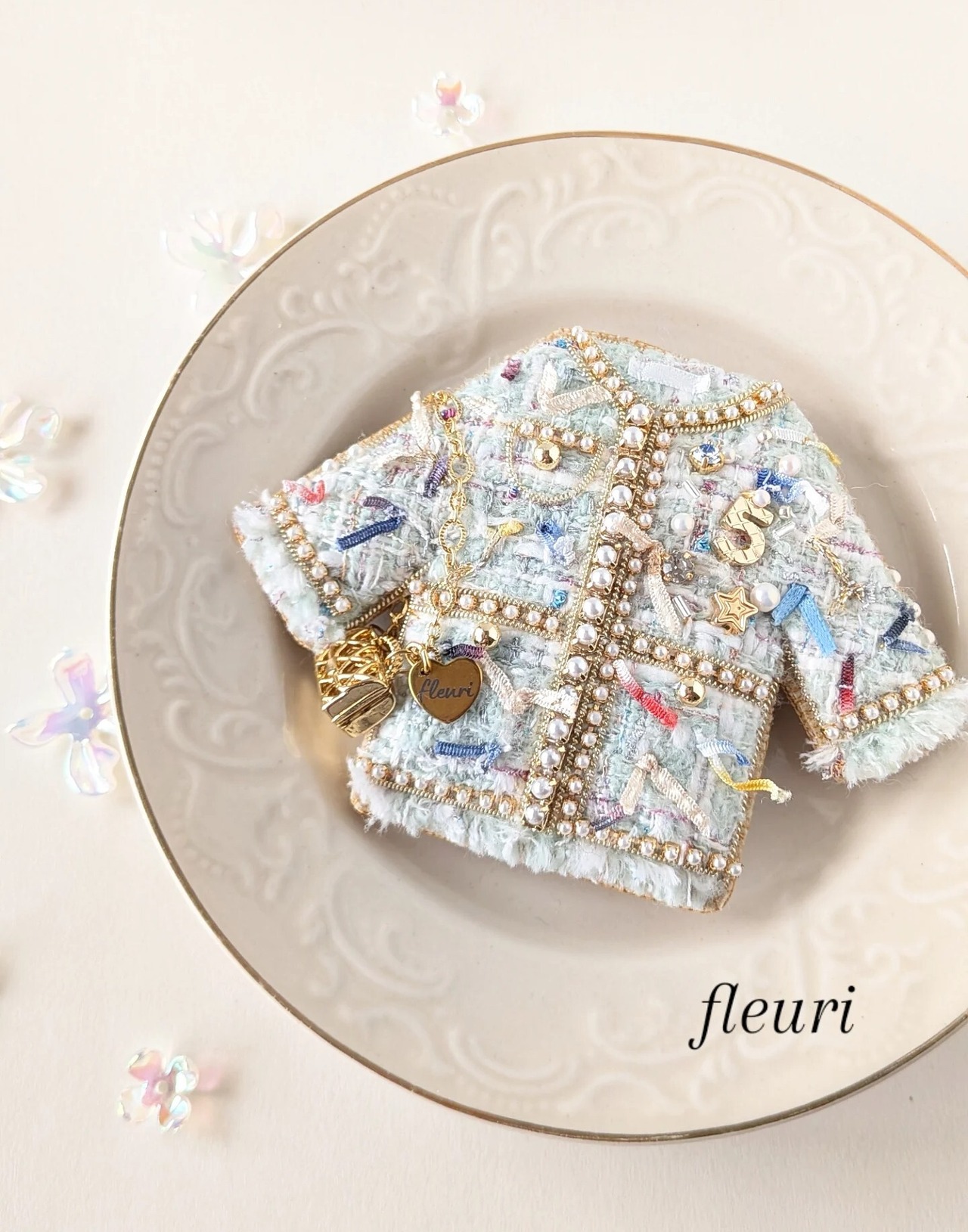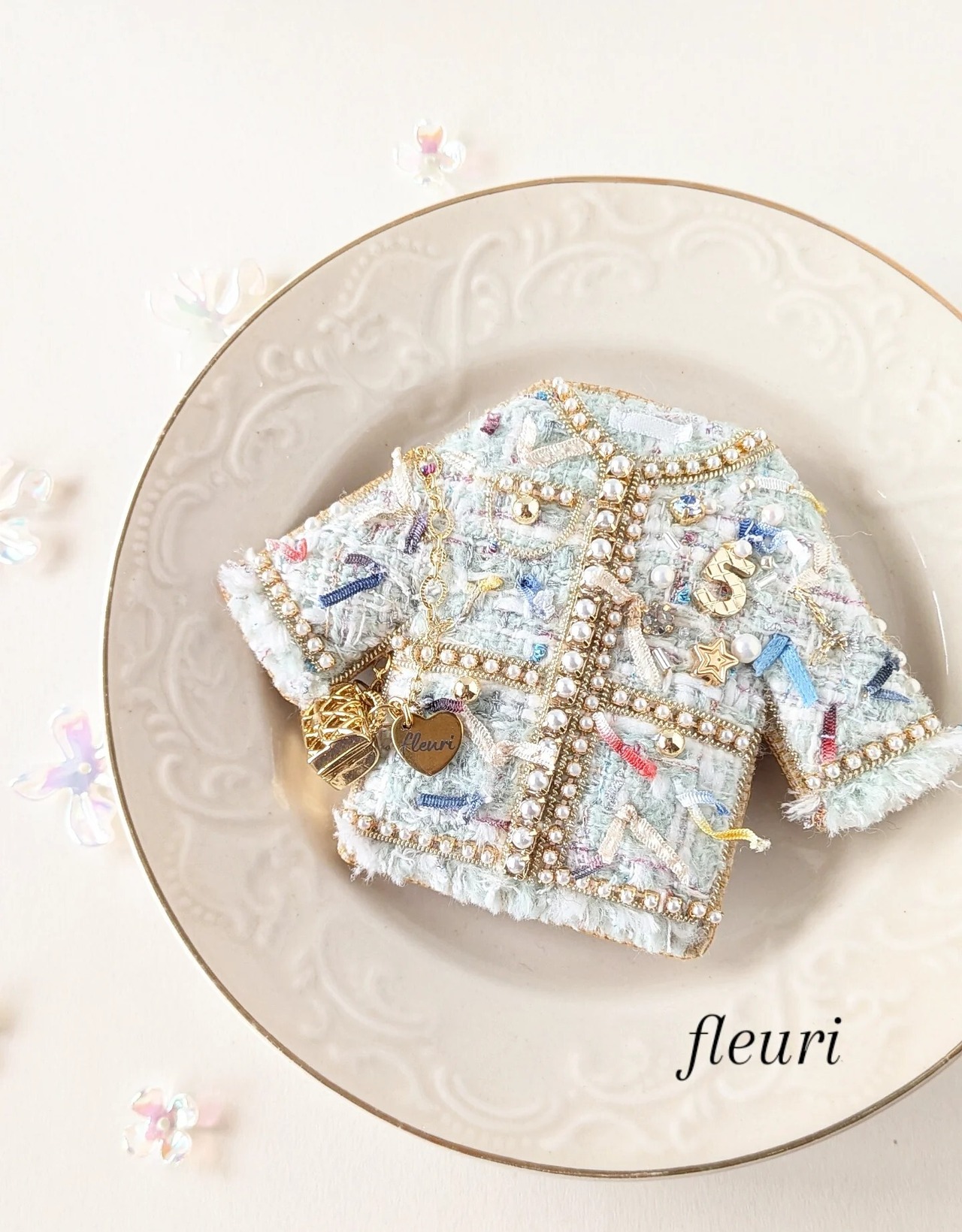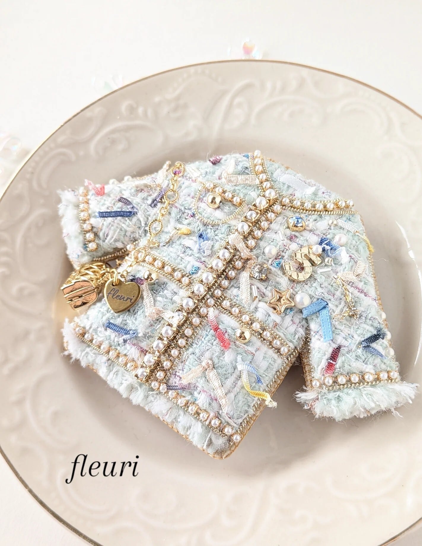 ミントグリーンツイードジャケット ブローチ兼バッグチャーム