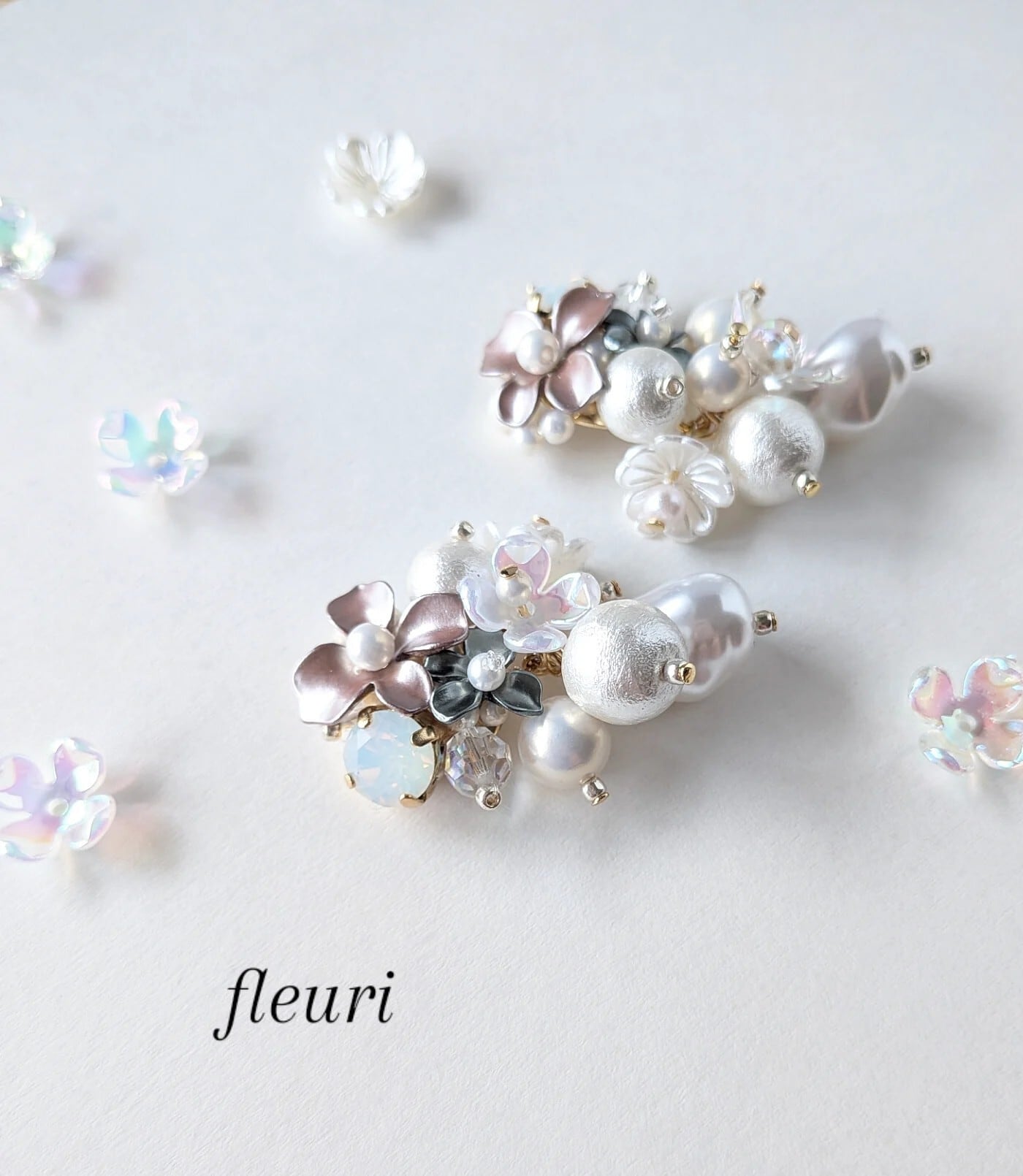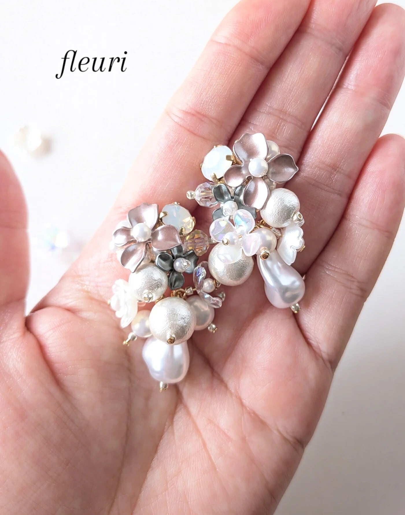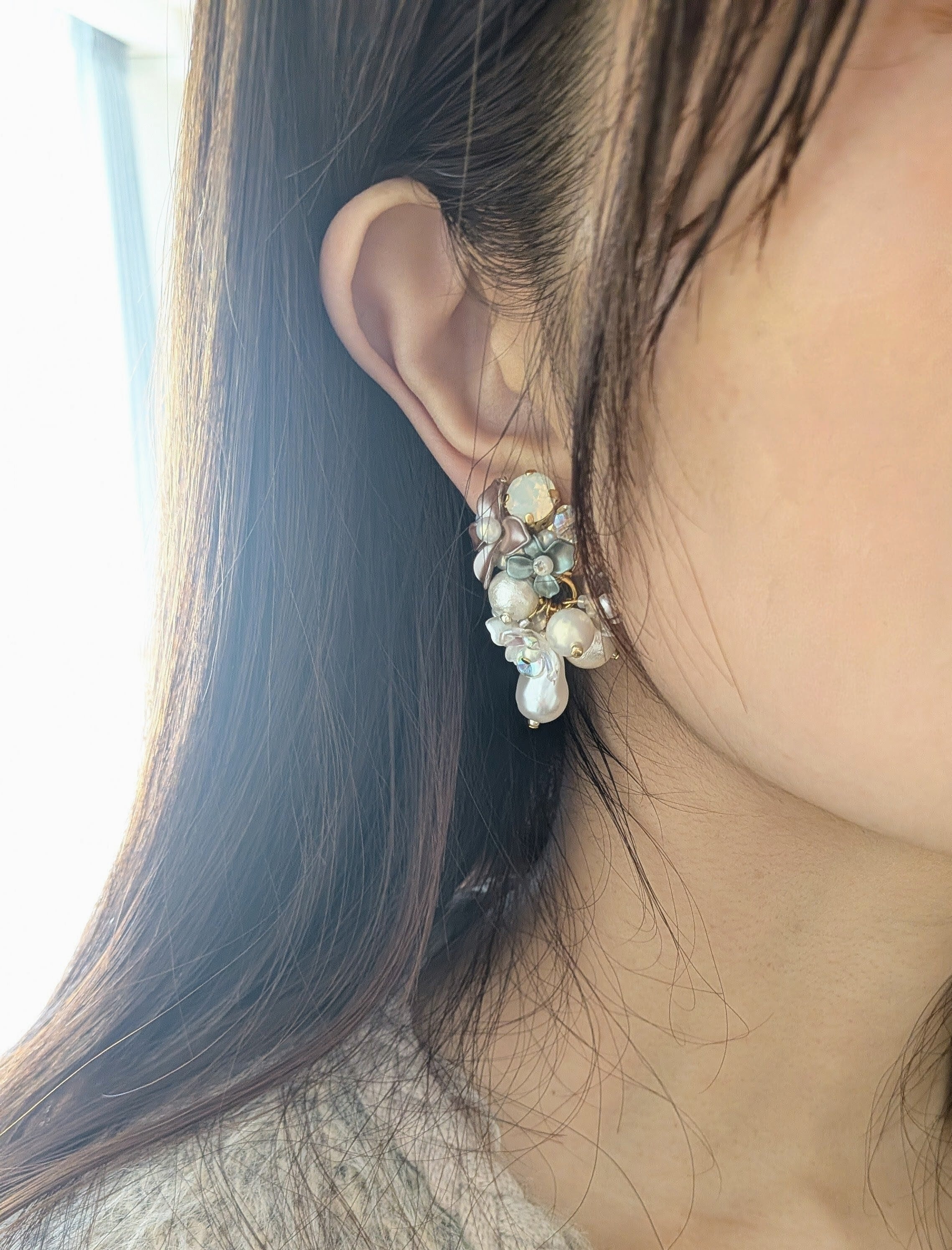 オケージョンにもぴったりなブーケのようなイヤリングです。大人っぽく華やか且、品のあるデザインになっています。