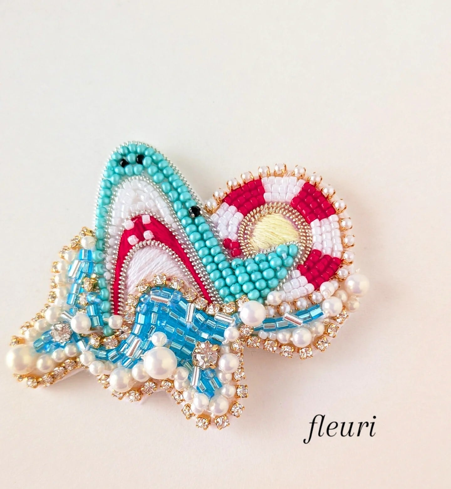 ビーズ刺繍は大変難しく歪みなどがございますので、ご了承ください。