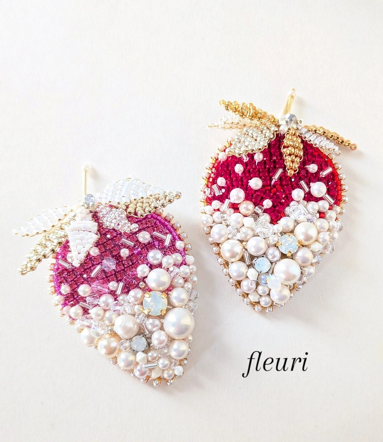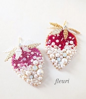 ショッキングピンク色のいちごのブローチです。