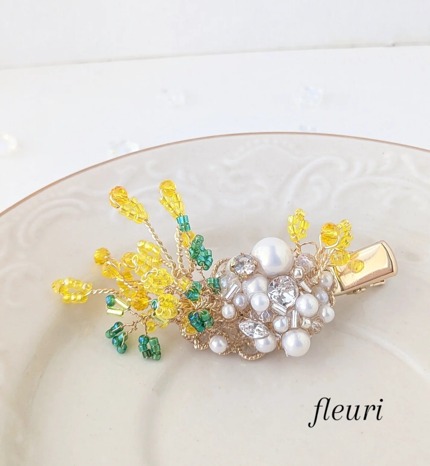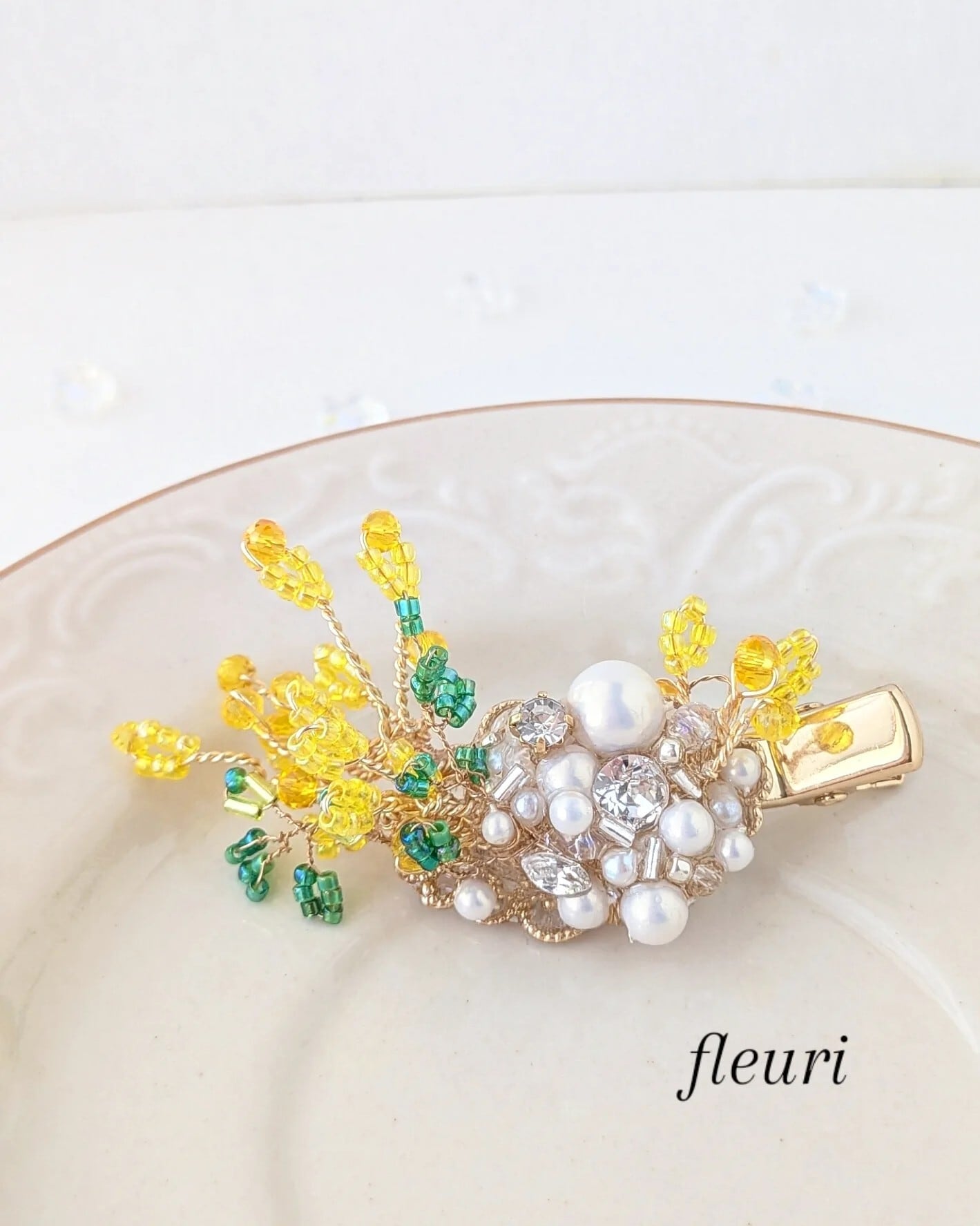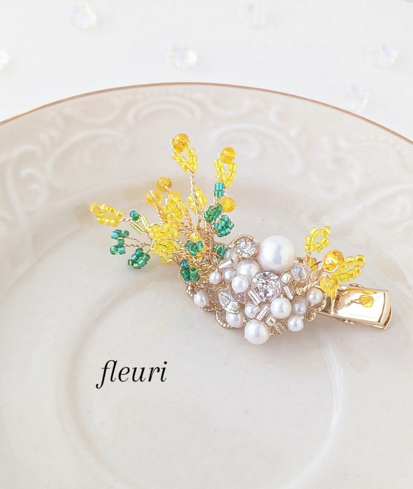 可愛らしいミモザをモチーフにしたヘアクリップです。