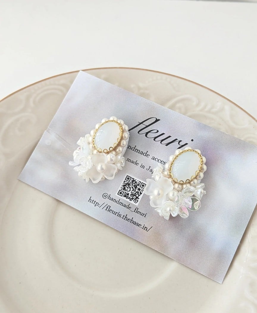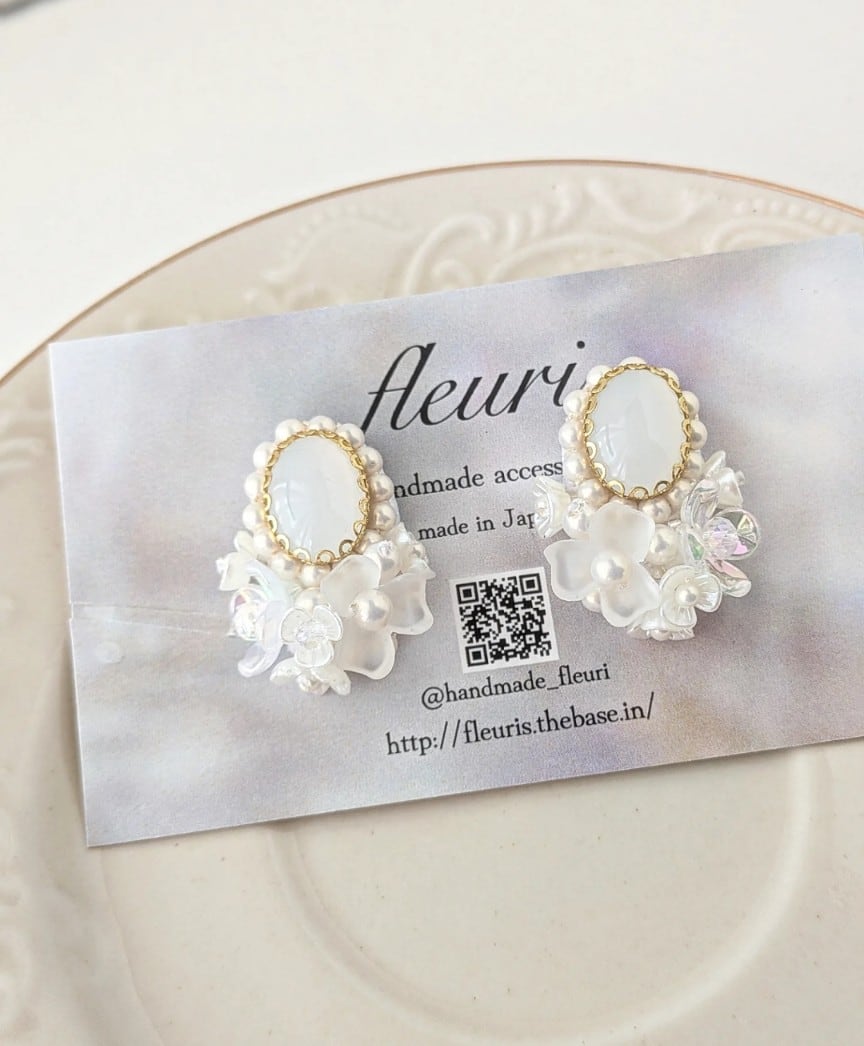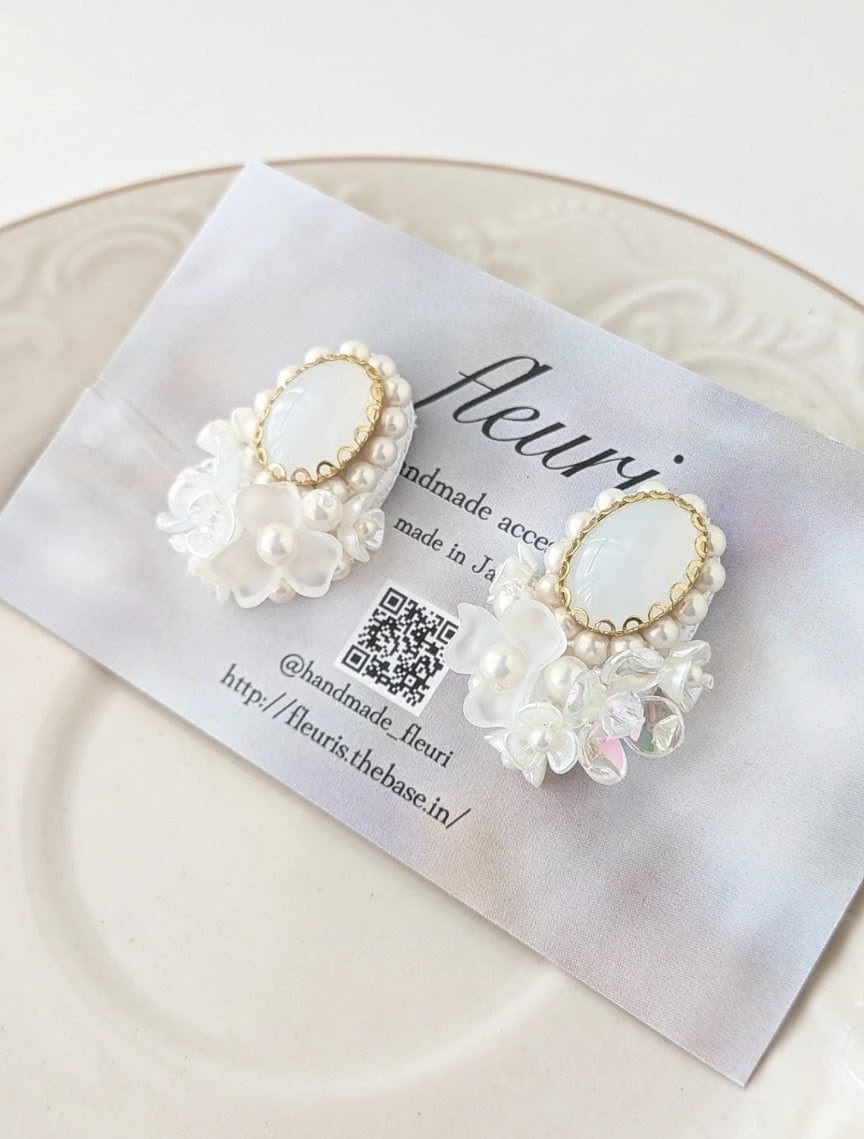 オケージョンにもぴったりなブーケのようなピアスてす。幻想的で柔らかな雰囲気、品のあるデザインになっています。