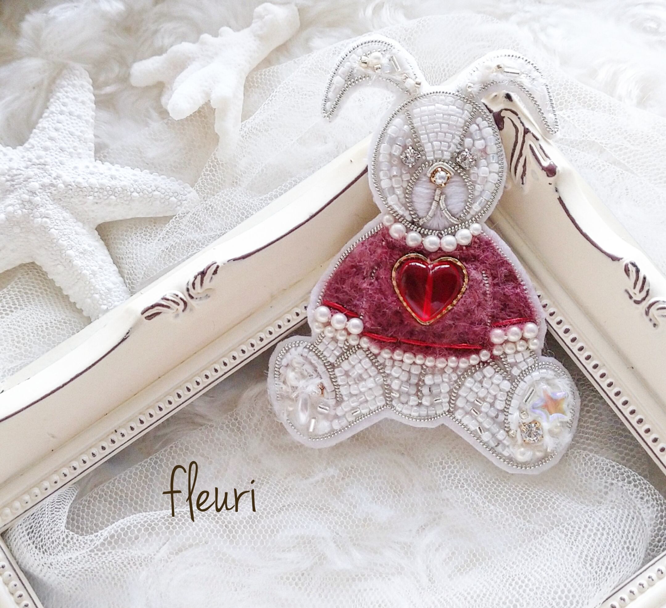 ハートのニットを着たうさぎ ブローチ シュシュ ヘアゴム
