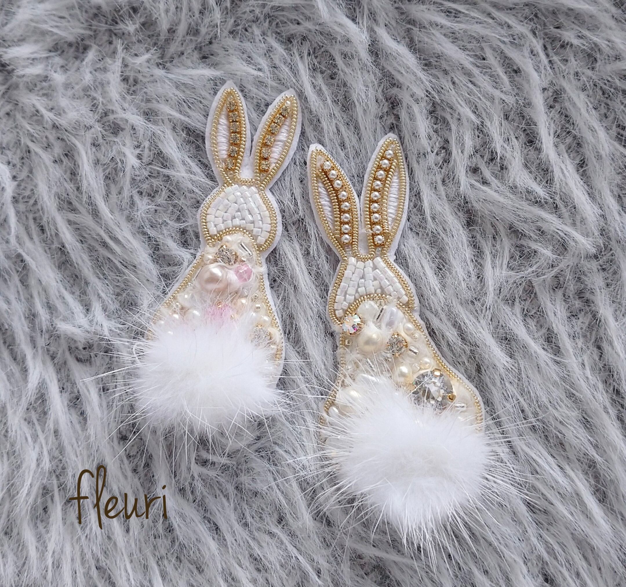 お正月仕様のピンクのビジューやパールを使ったうさぎの後ろ姿ブローチです。