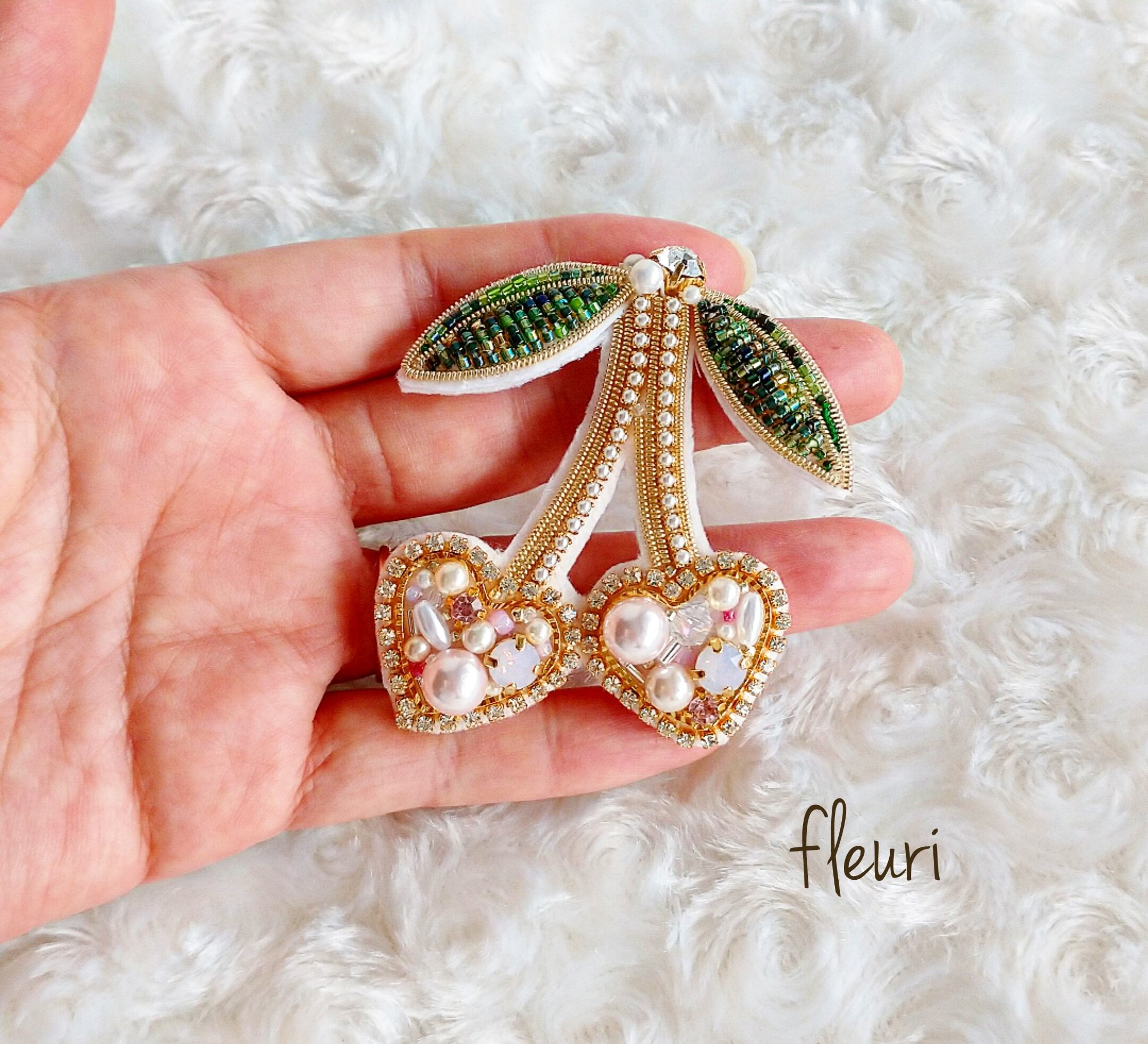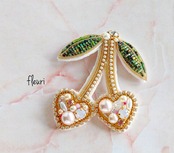 ハートのさくらんぼブローチ
