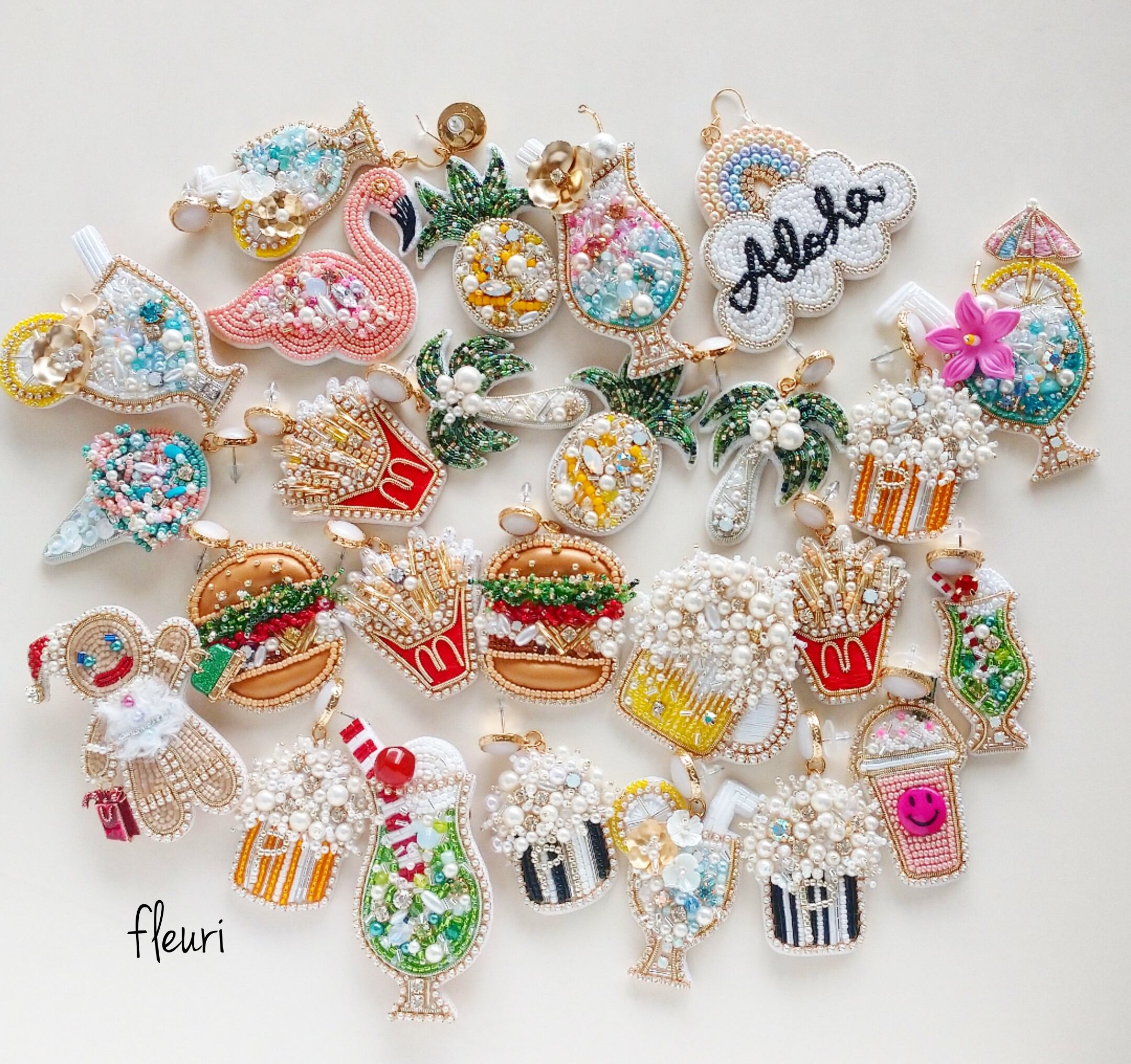カラフルなトロピカルドリンクをイメージしたビーズ刺繍のアクセサリーです。