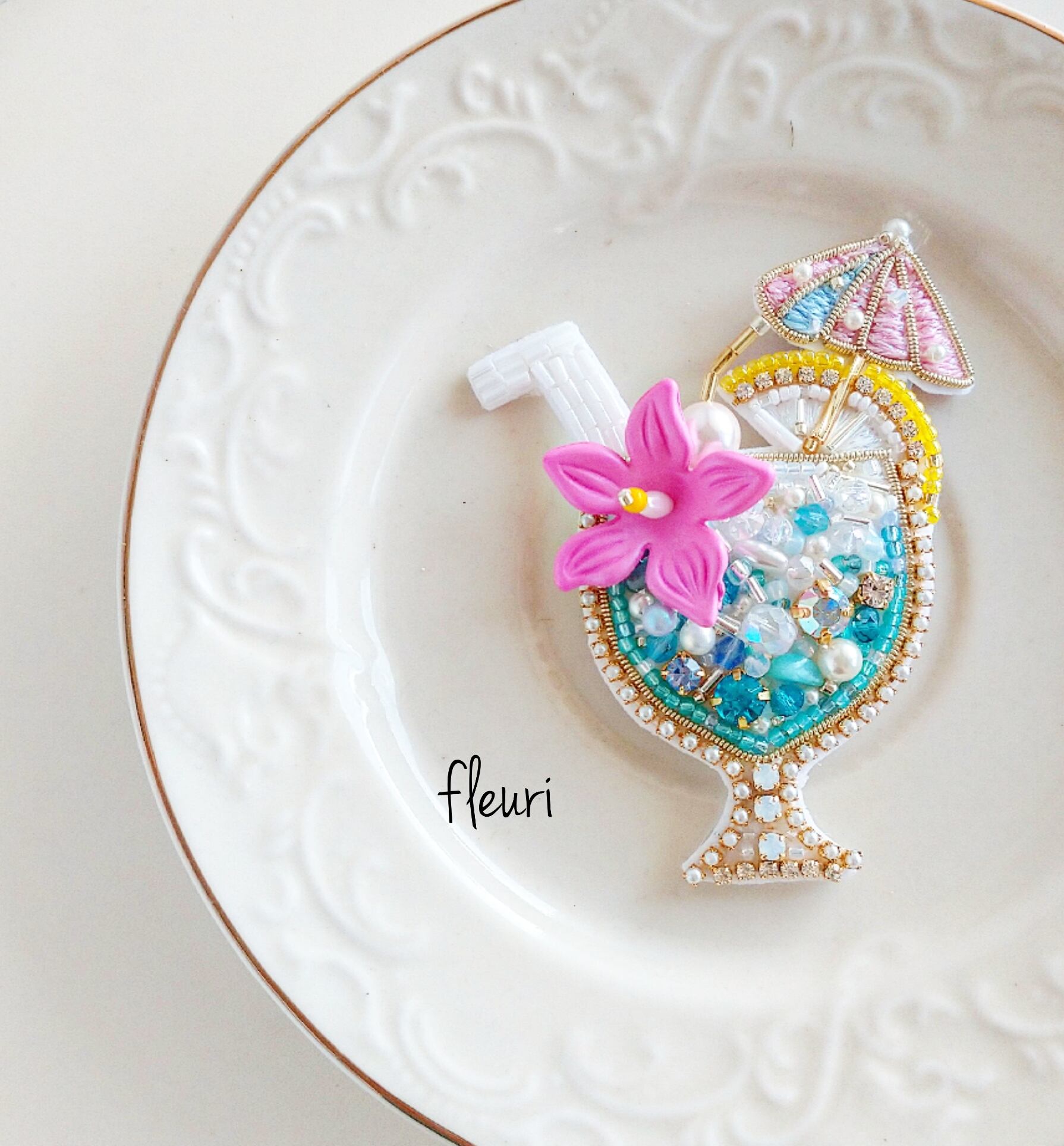 ゲリラ販売どなたでも★傘つきの夏の日のトロピカルジュース ブローチ