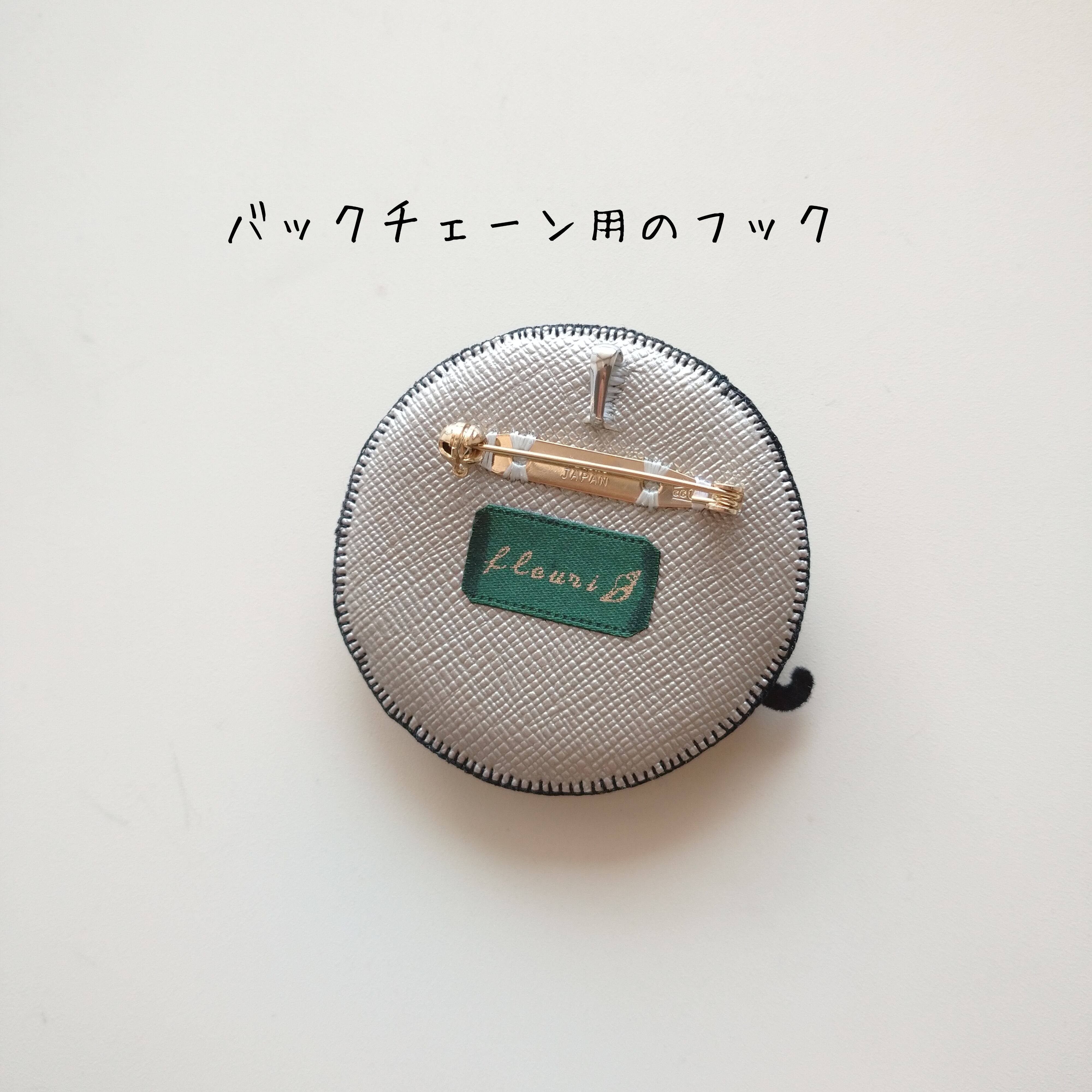 バッグチェーン用のフックつき。お手持ちのバッグチェーンをつけられます。