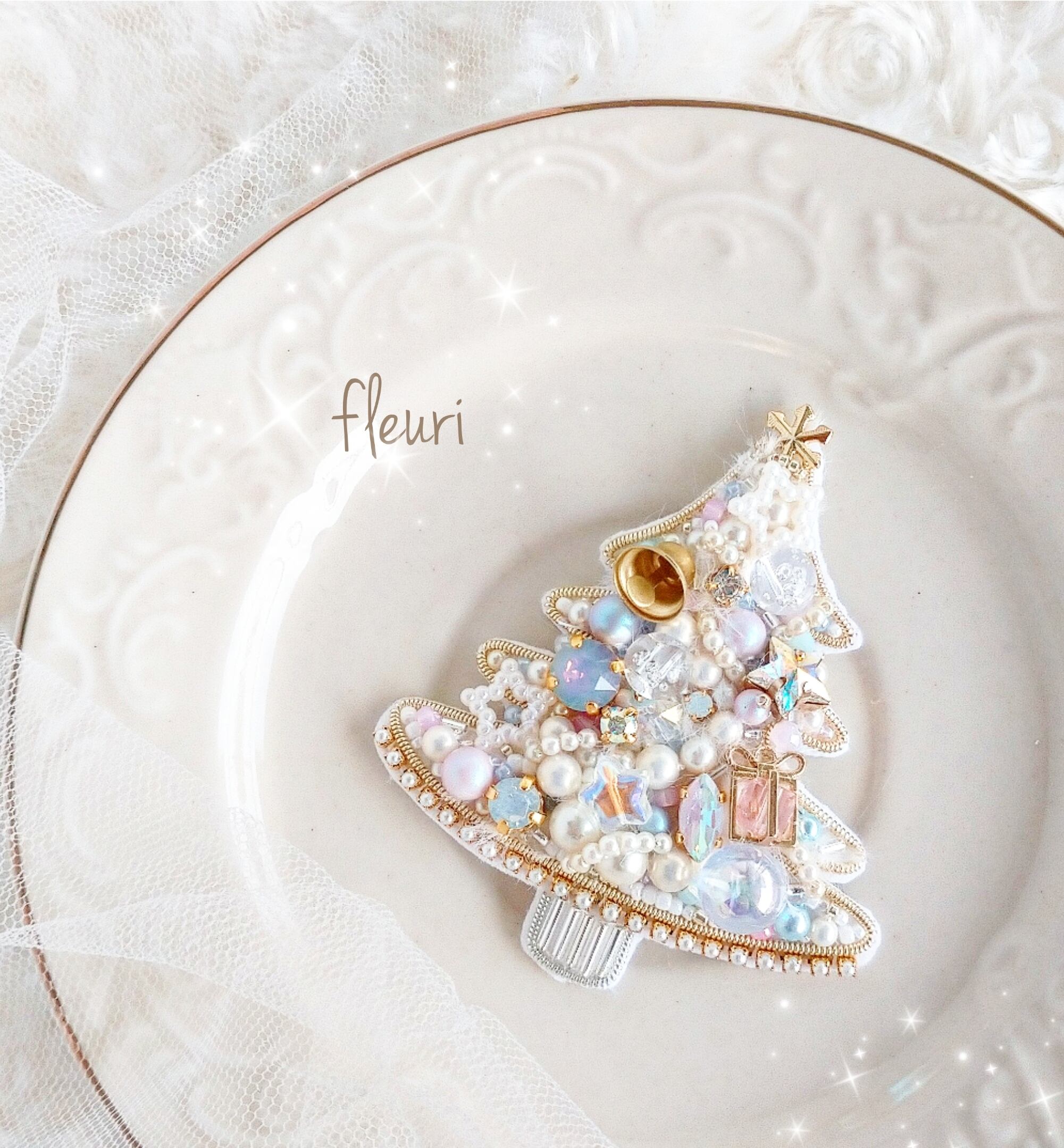 キラキラのスワロフスキーのビジューや、スワロフスキーのパールが美しく冬を彩る一品です。