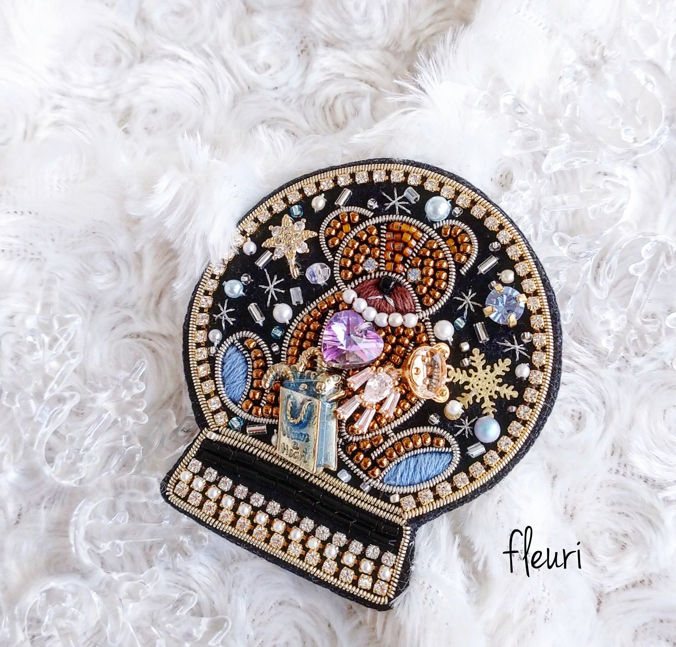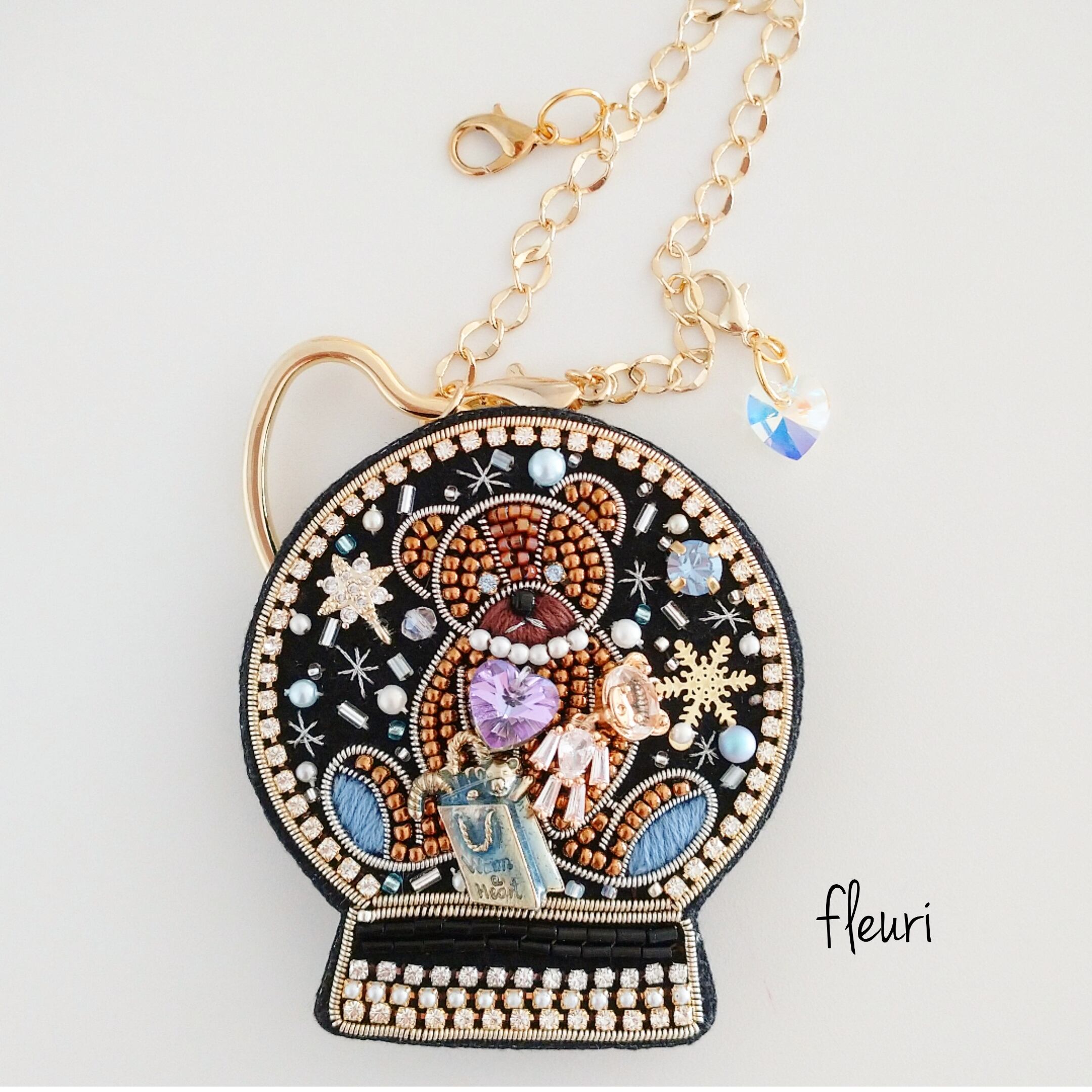 2023 テディベア×3のスノードーム ブローチ兼バッグチャーム