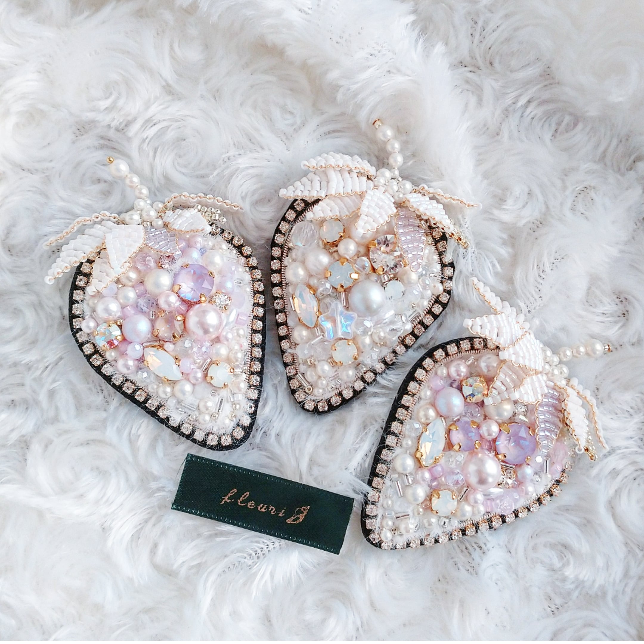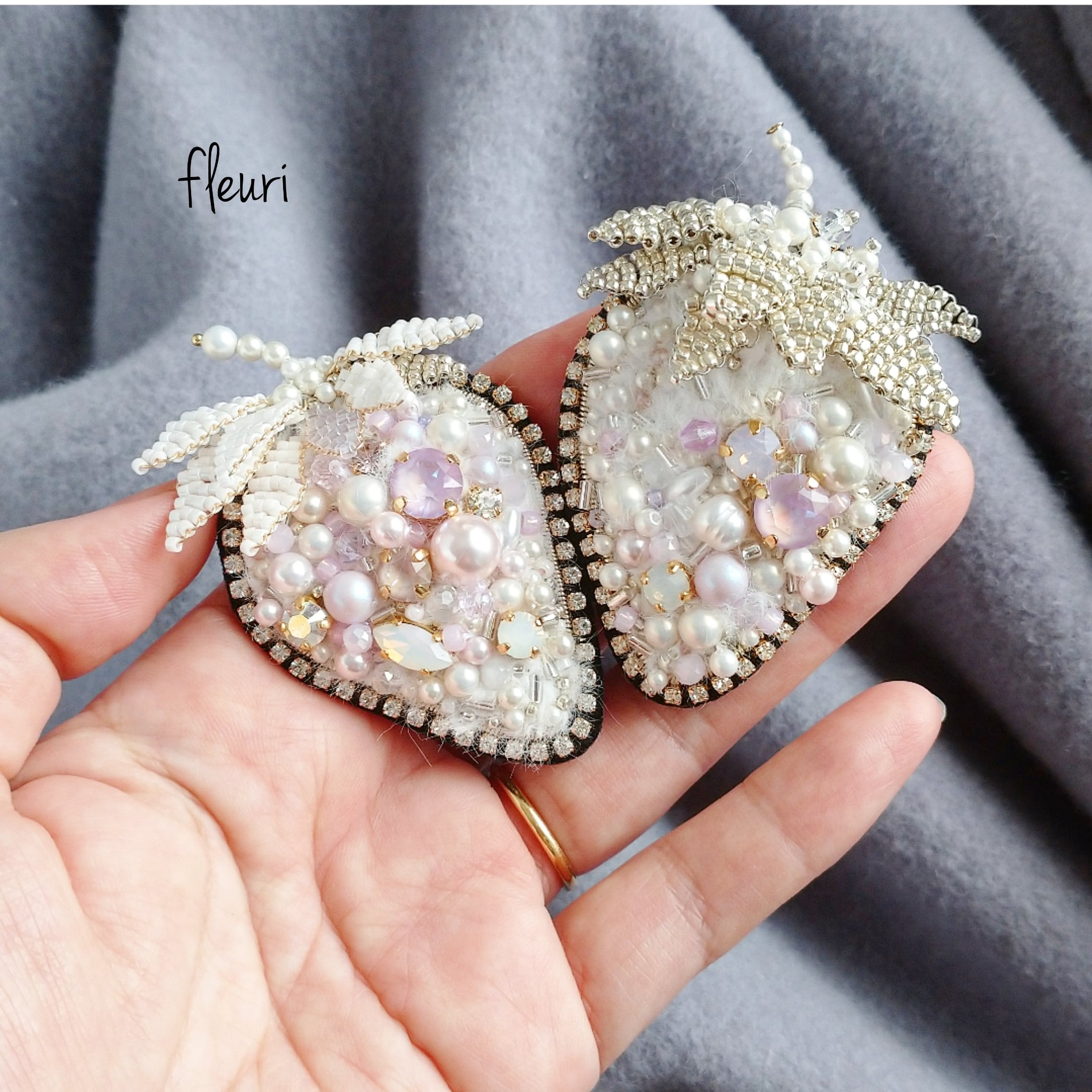 葉っぱもホワイト系 ホワイトチョコいちごのブローチ