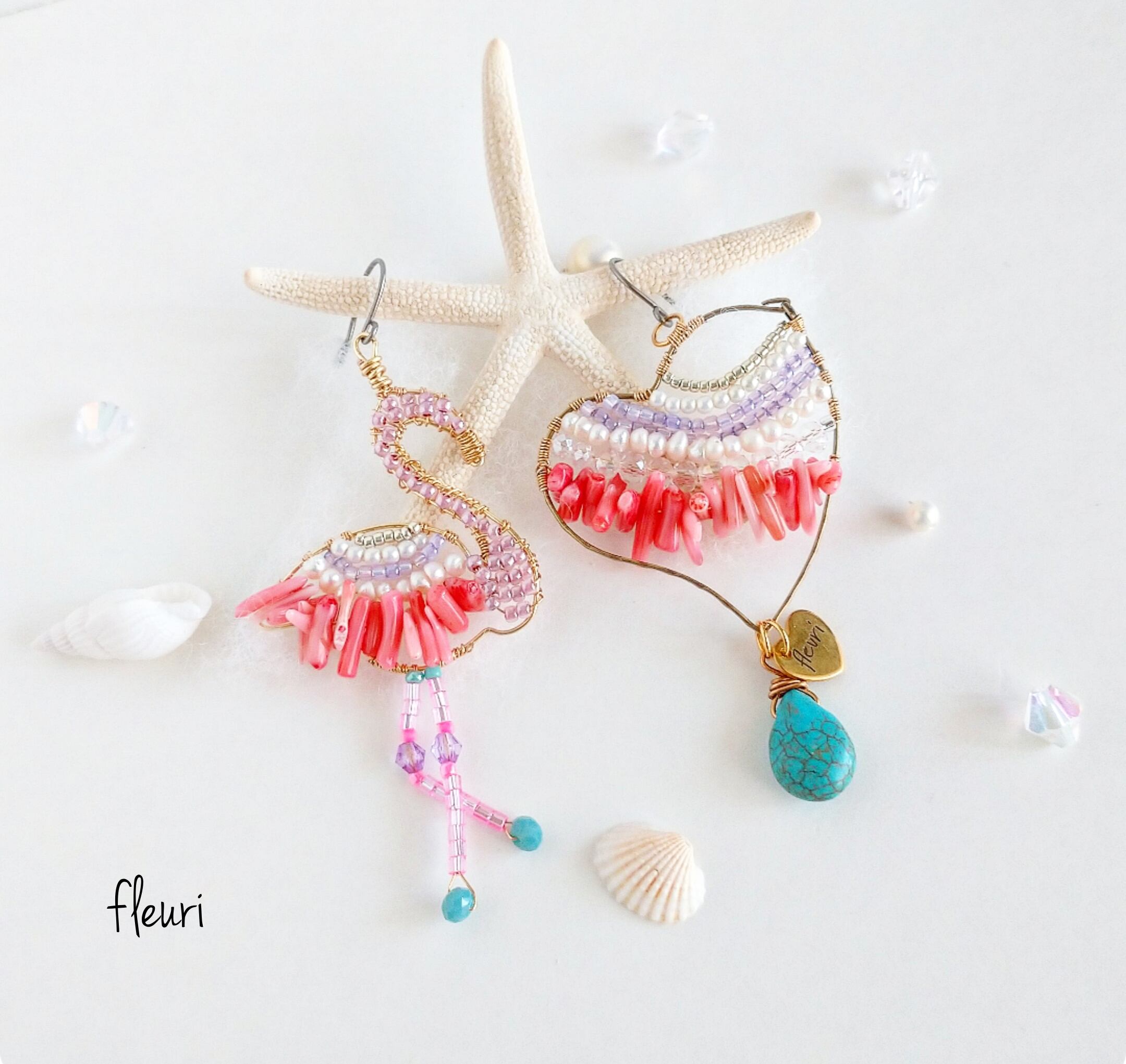 フラミンゴは一本のジュエリーワイヤーをフラミンゴの形に形作り装飾をしました。