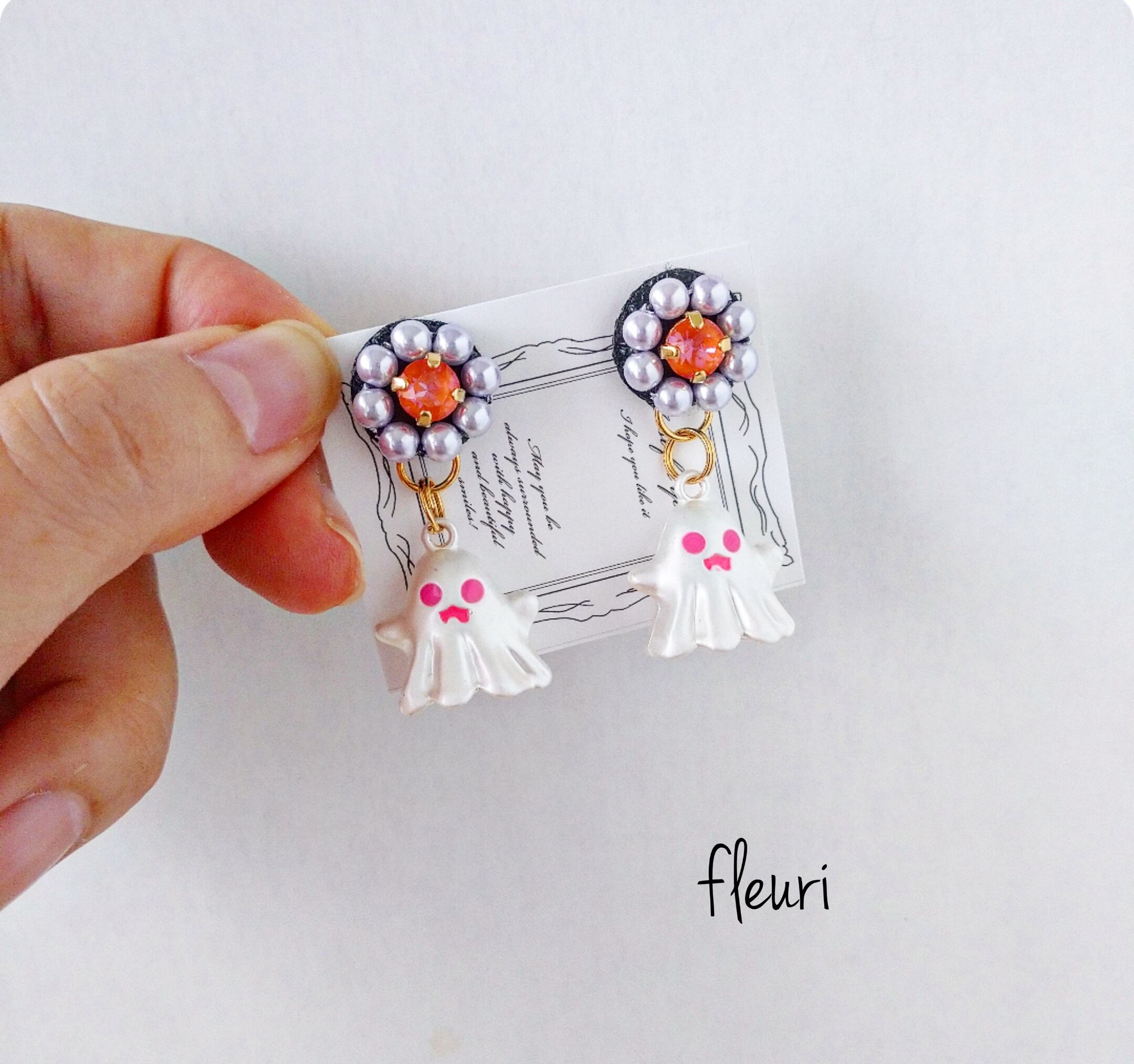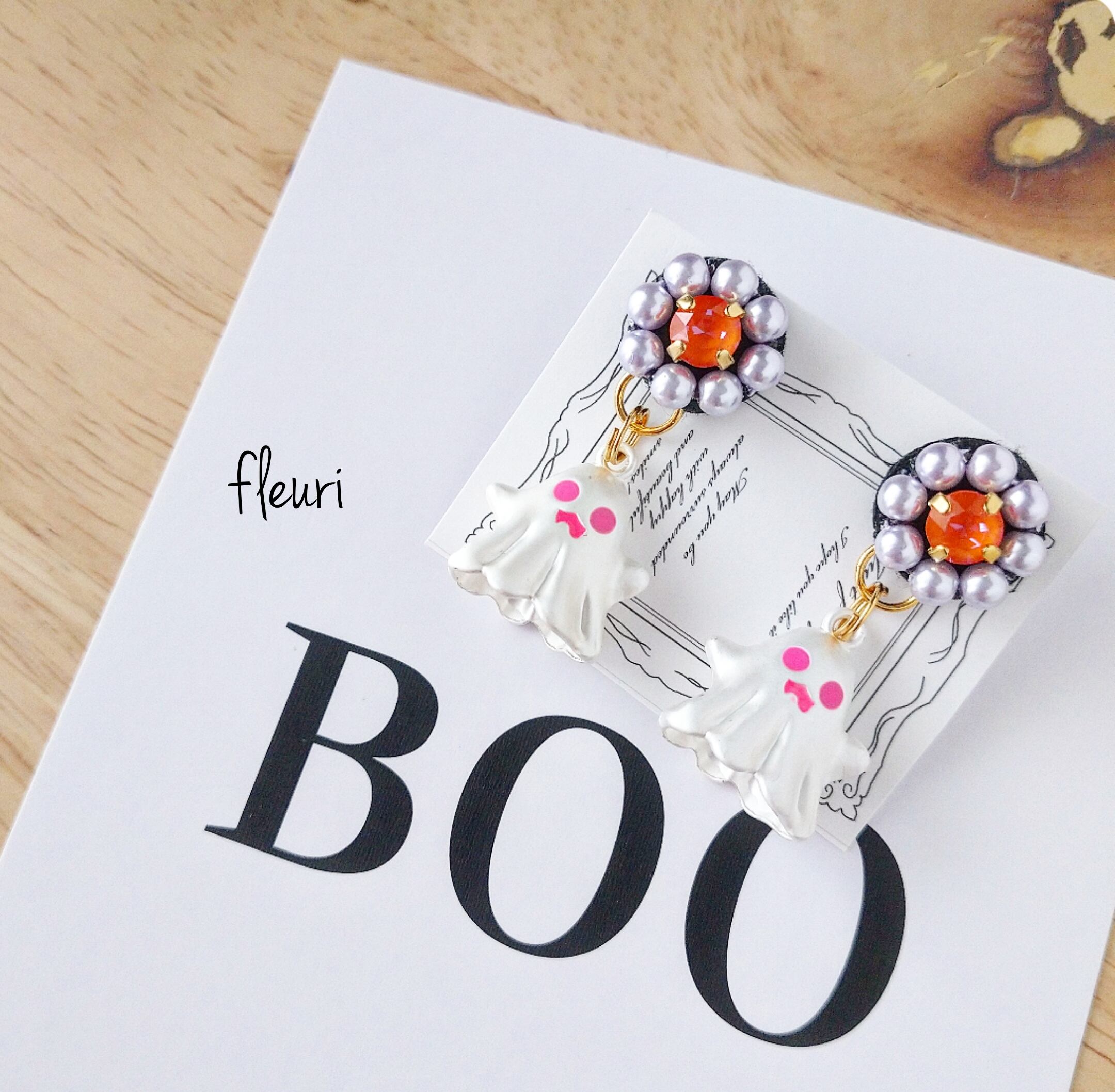 ハロウィンお花とおばけのチタンピアス