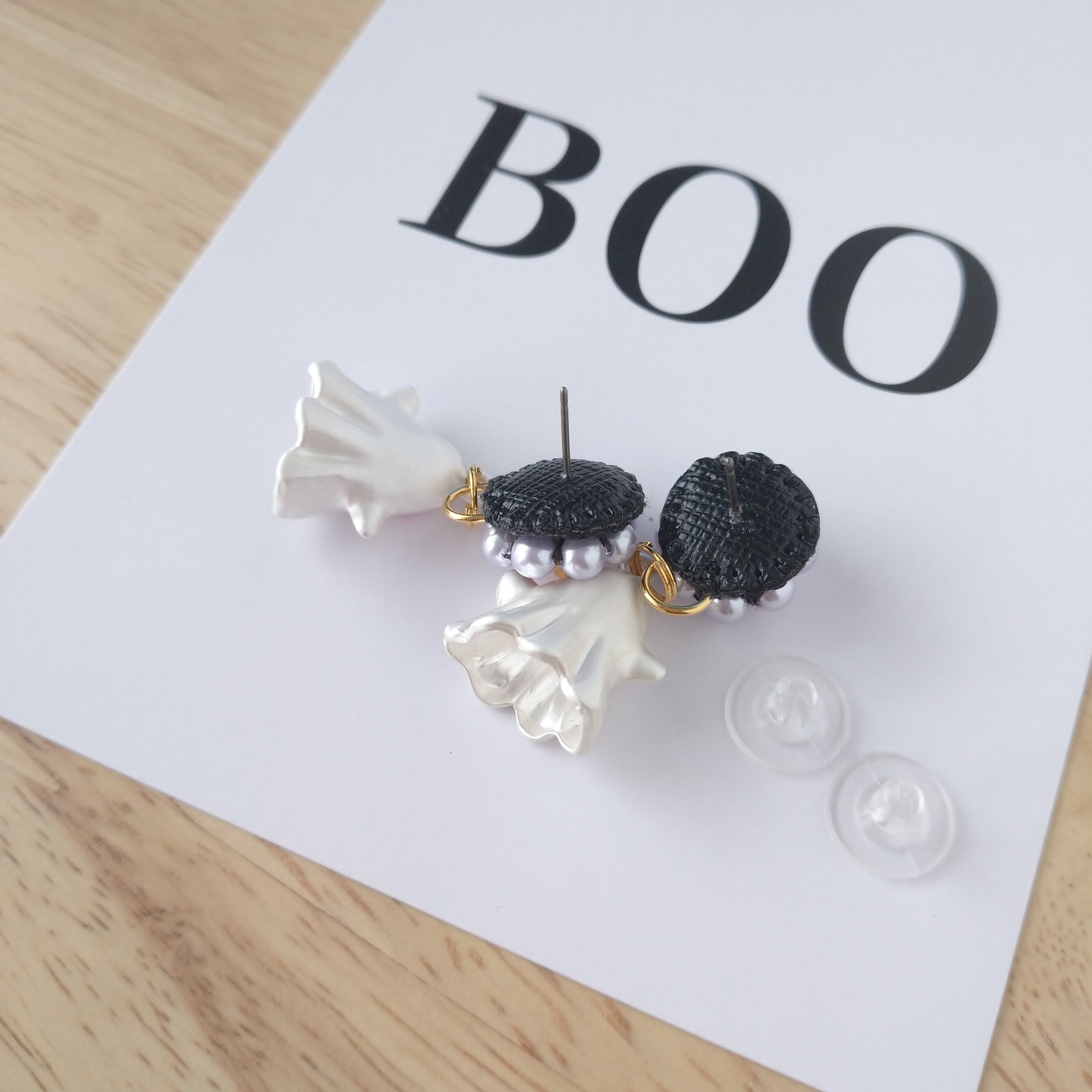 お花とおばけのチタンピアスです。