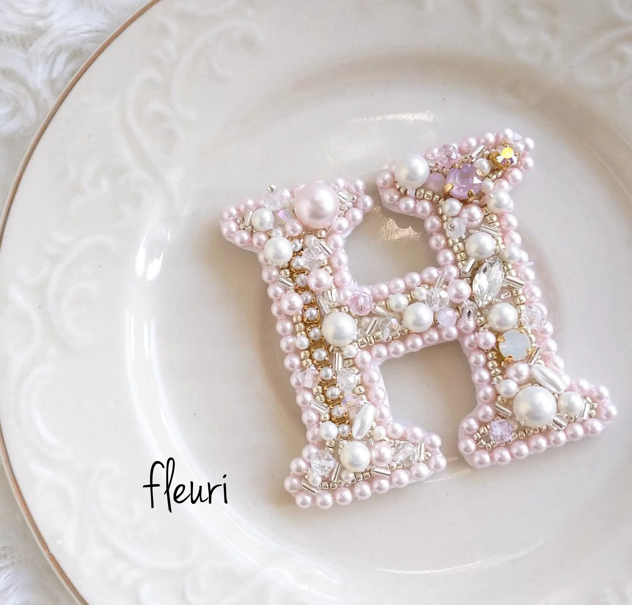 ピンクのH サンプル品 10%オフ イニシャルブローチ
