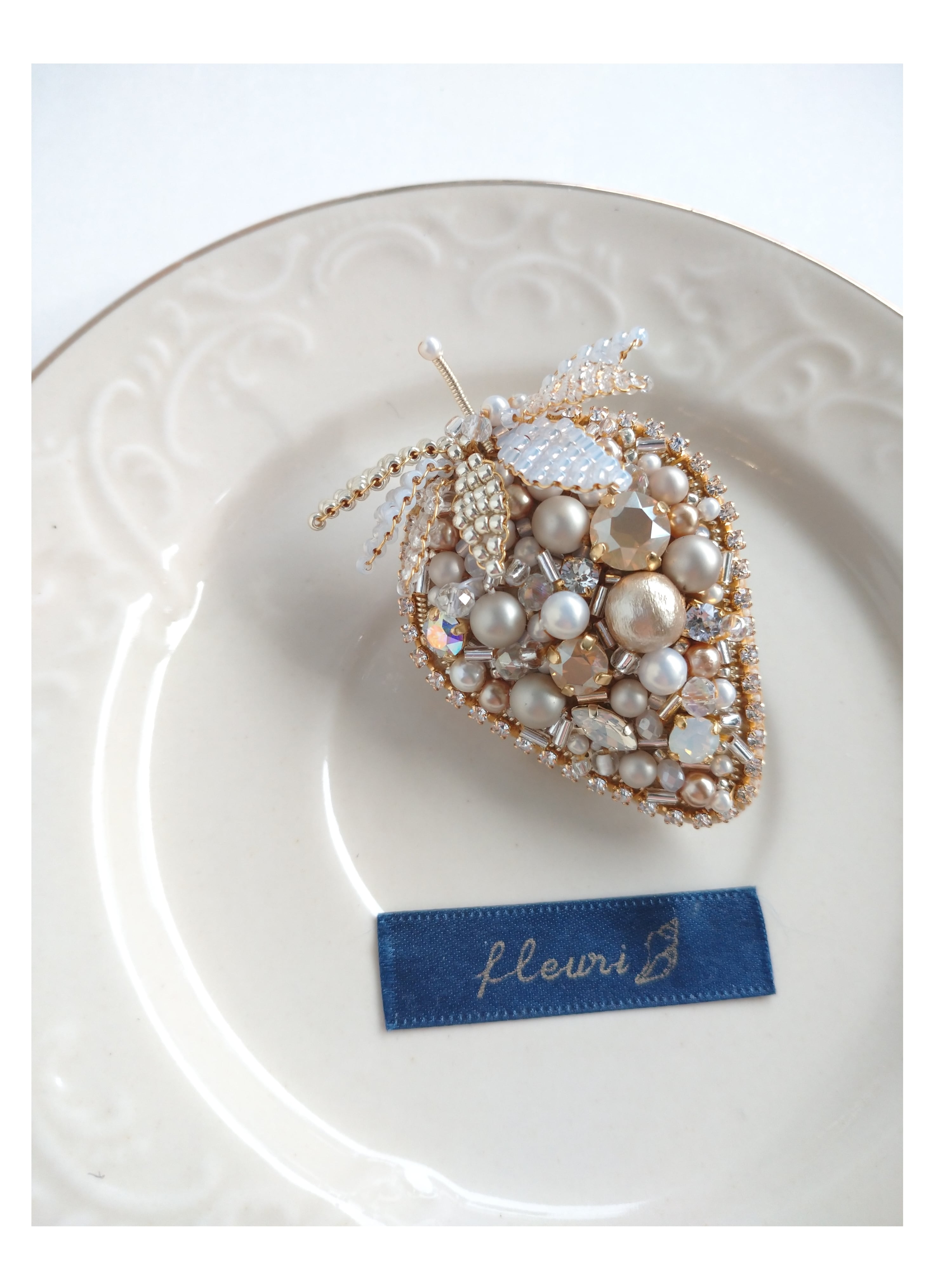 ミルクティのいちごのブローチです。